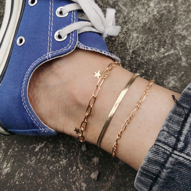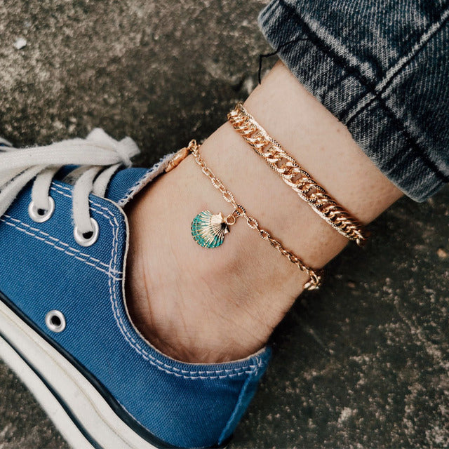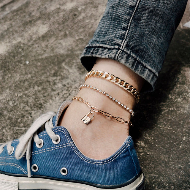 Anklets- 2022 Beach Crystal Anklet for Women Gold Silver Color Cuban Chain Boho Ankle Bracelet on Leg Foot Bracelets Bohemian Jewelry