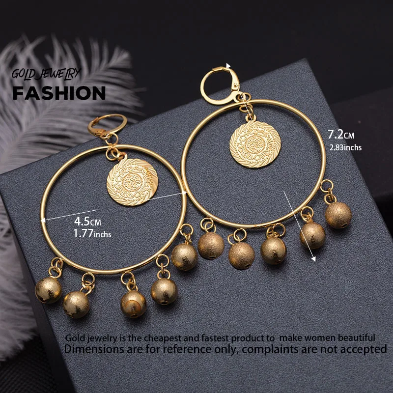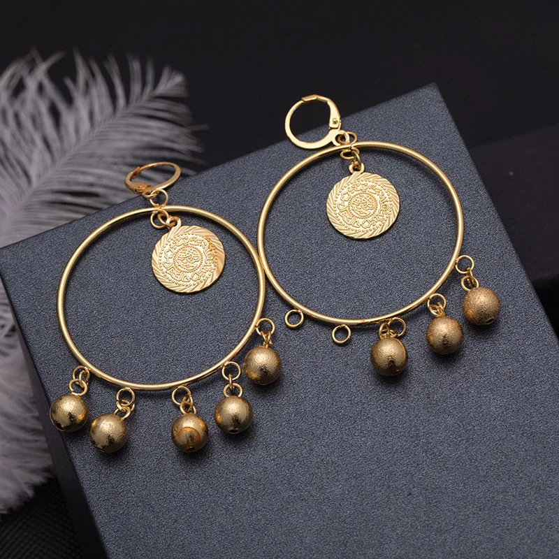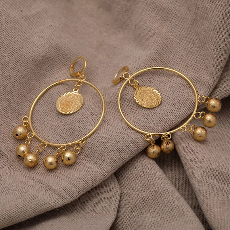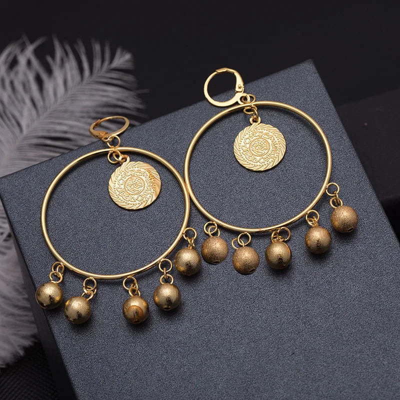 Afraic Jewelry -Bead tassel Gold Color Earrings for Women African Jewelry Ethiopian Gold Color Wedding Bigger Earring Wedding Earrings