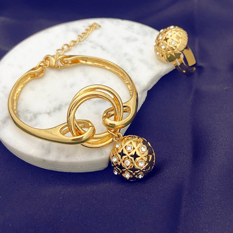 Afraic Jewelry -Jewelry Sets For Women Fashion Jewelry 18k Gold Plated Necklace Sets Openwork Bead Pendant