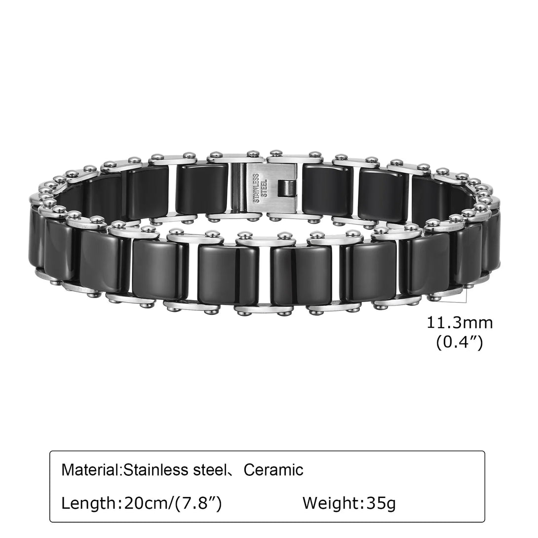 Black Ceramic Bracelet for Men,Natural Stone Link Chain Wristband, Health Never Fade Jewelry Gift for Him