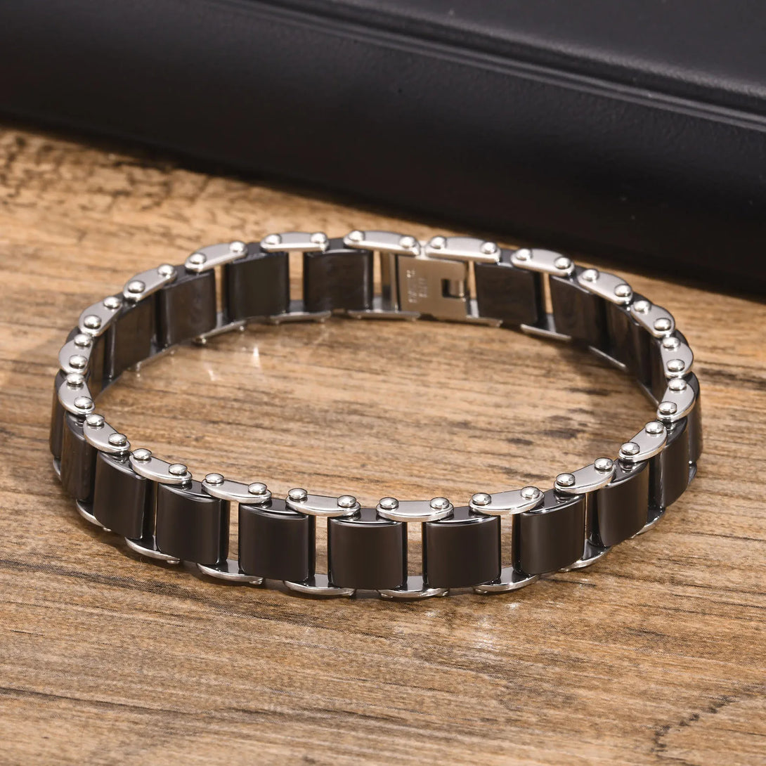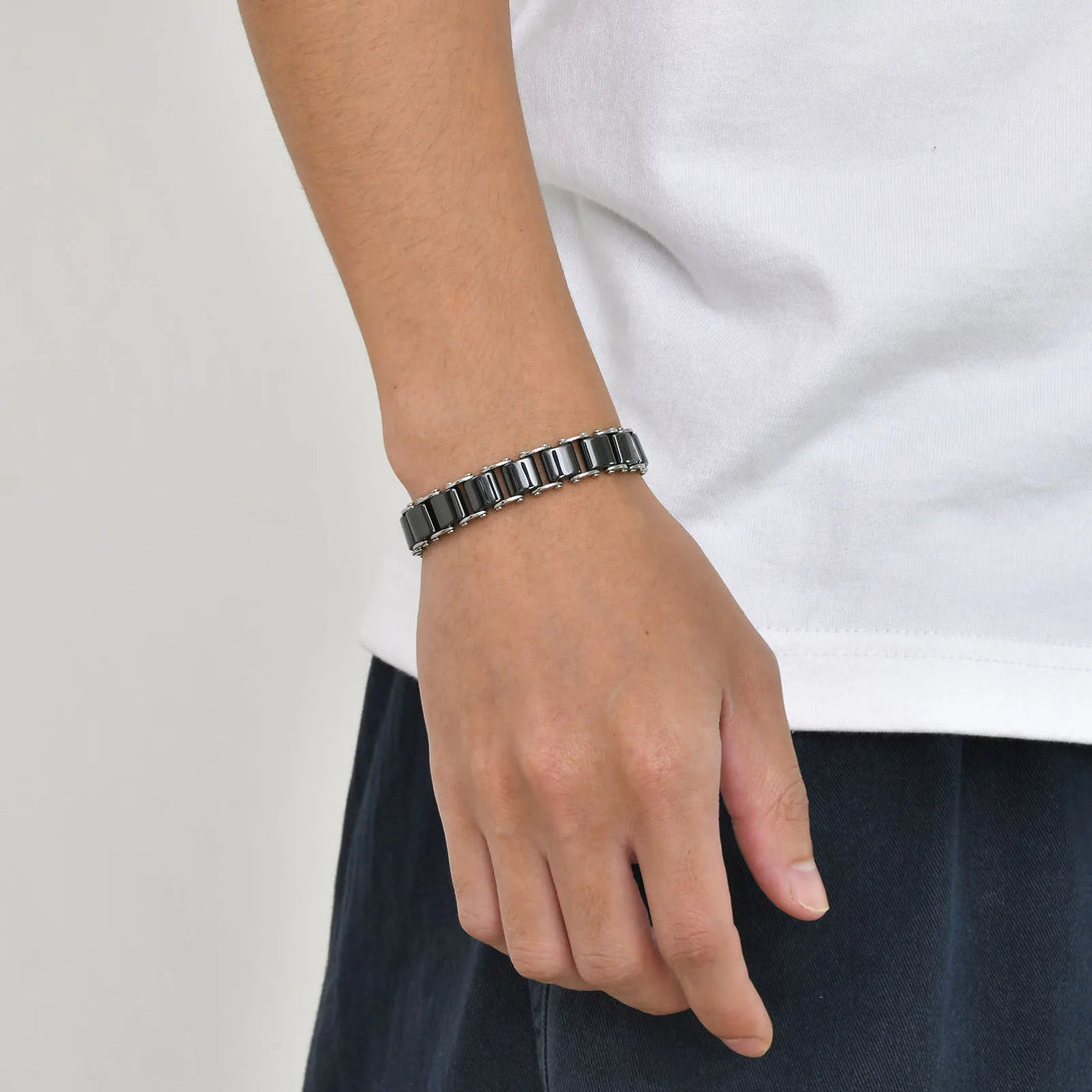Black Ceramic Bracelet for Men,Natural Stone Link Chain Wristband