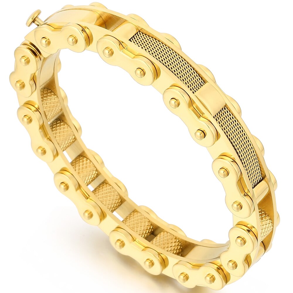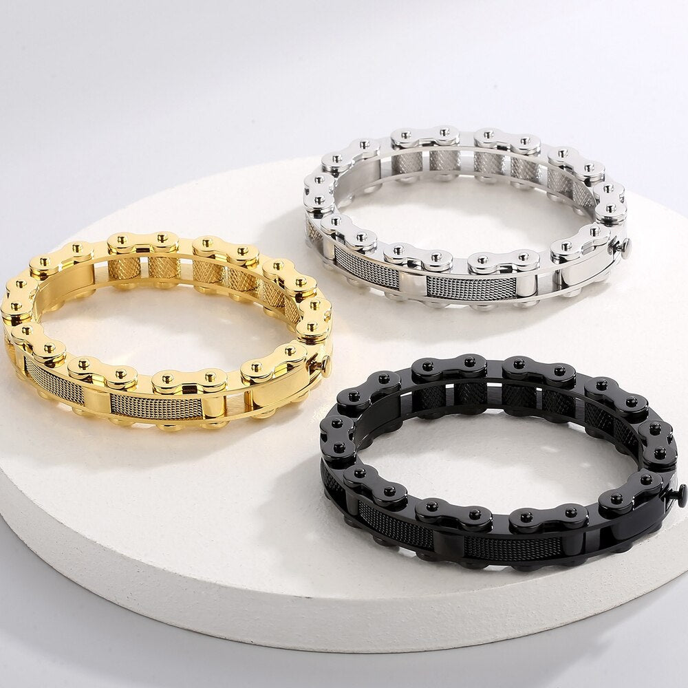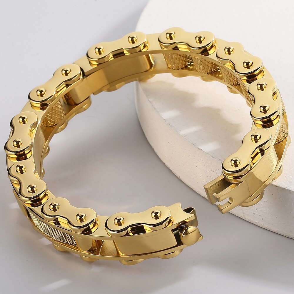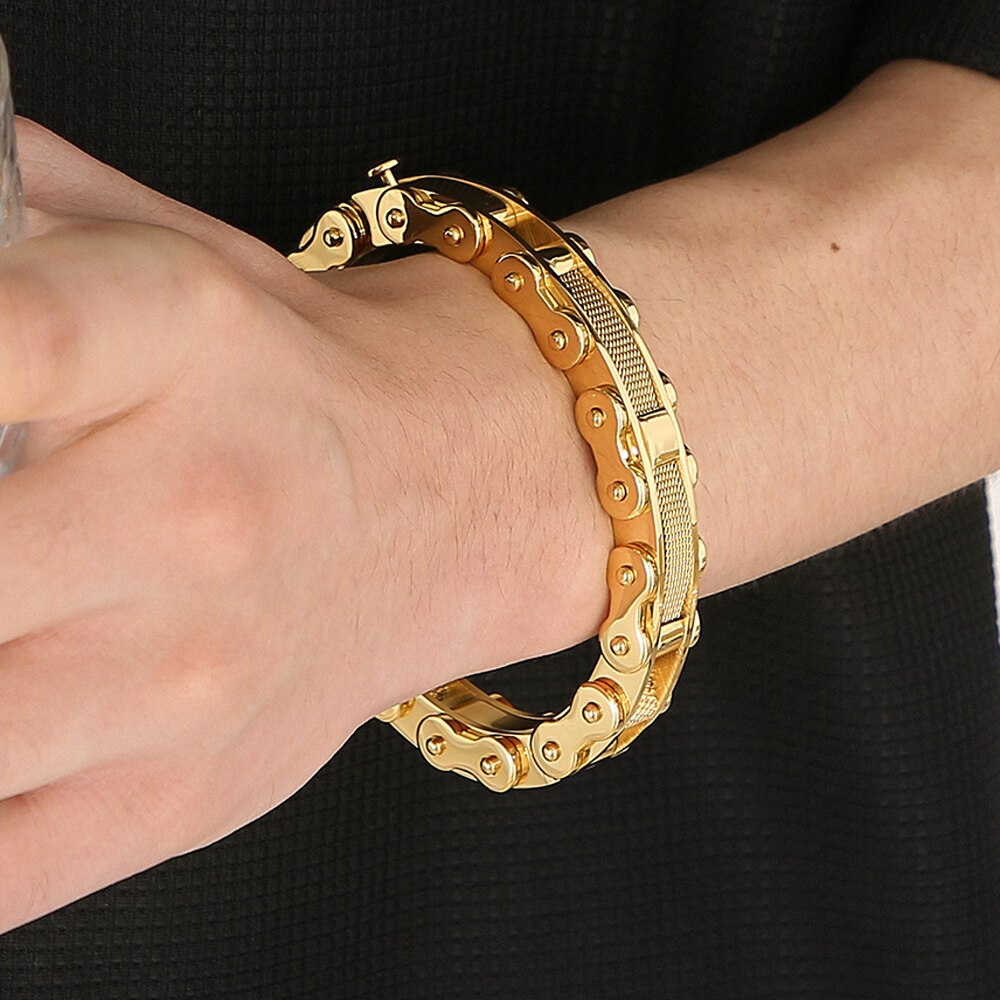 Black Gold Plated Wrap Bracelet for Men Motorcycle Club Bicycle Chain Bangles for Man Stainless Steel Bikers Jewelry Accessories