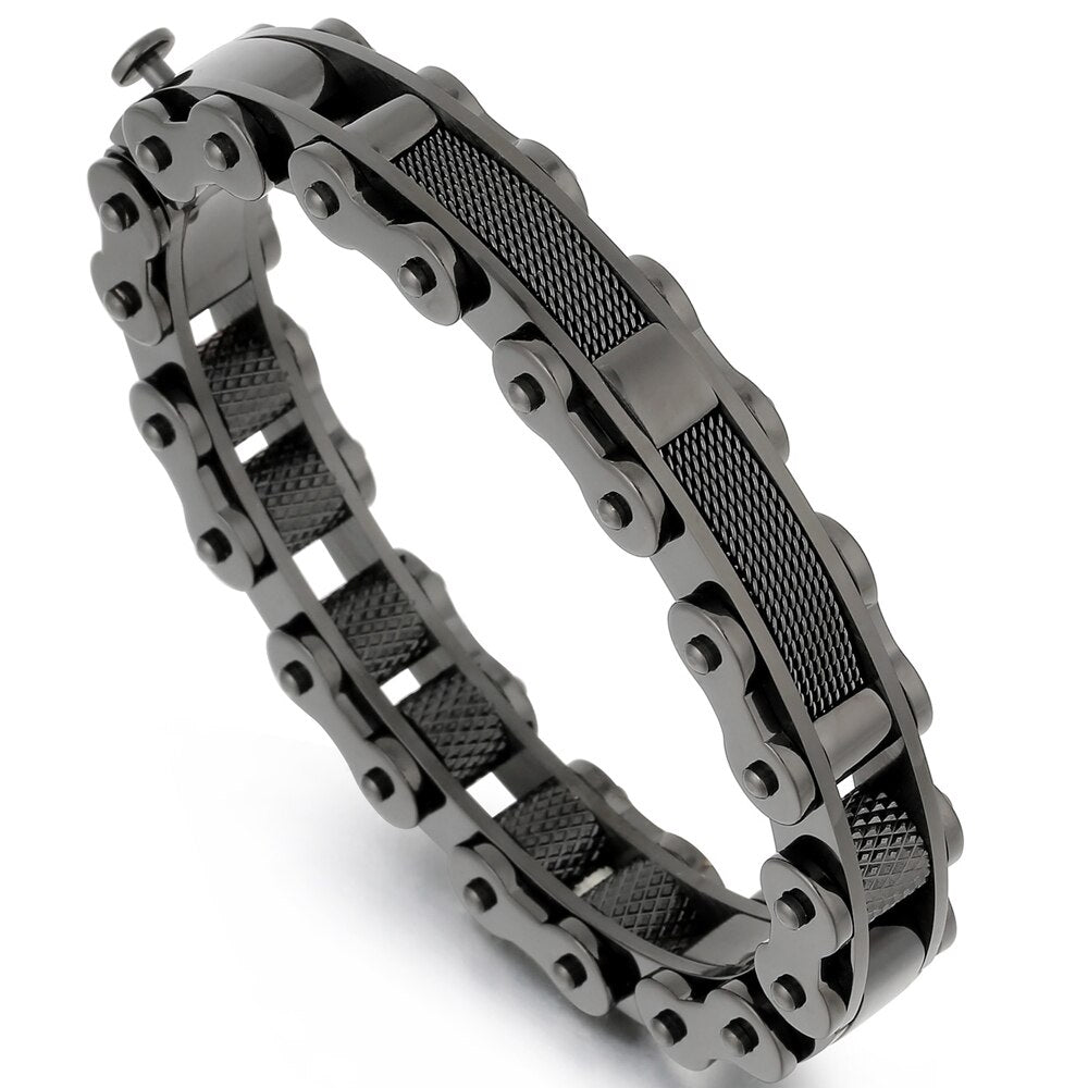 Black Gold Plated Wrap Bracelet for Men Motorcycle Club Bicycle Chain Bangles for Man