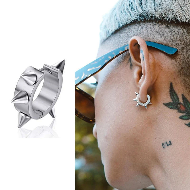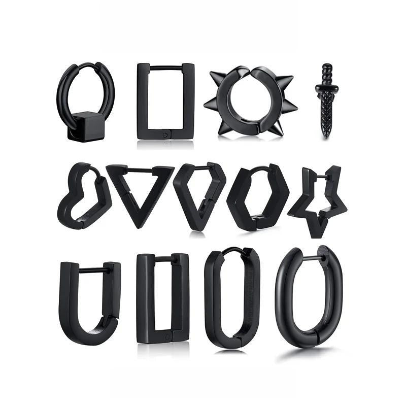 Black Hoops Earring for Men, Minimalist Geometric Rectangular Hexagon Heart Triangle Pentagram Square Hoop Earring,Men Jewelry