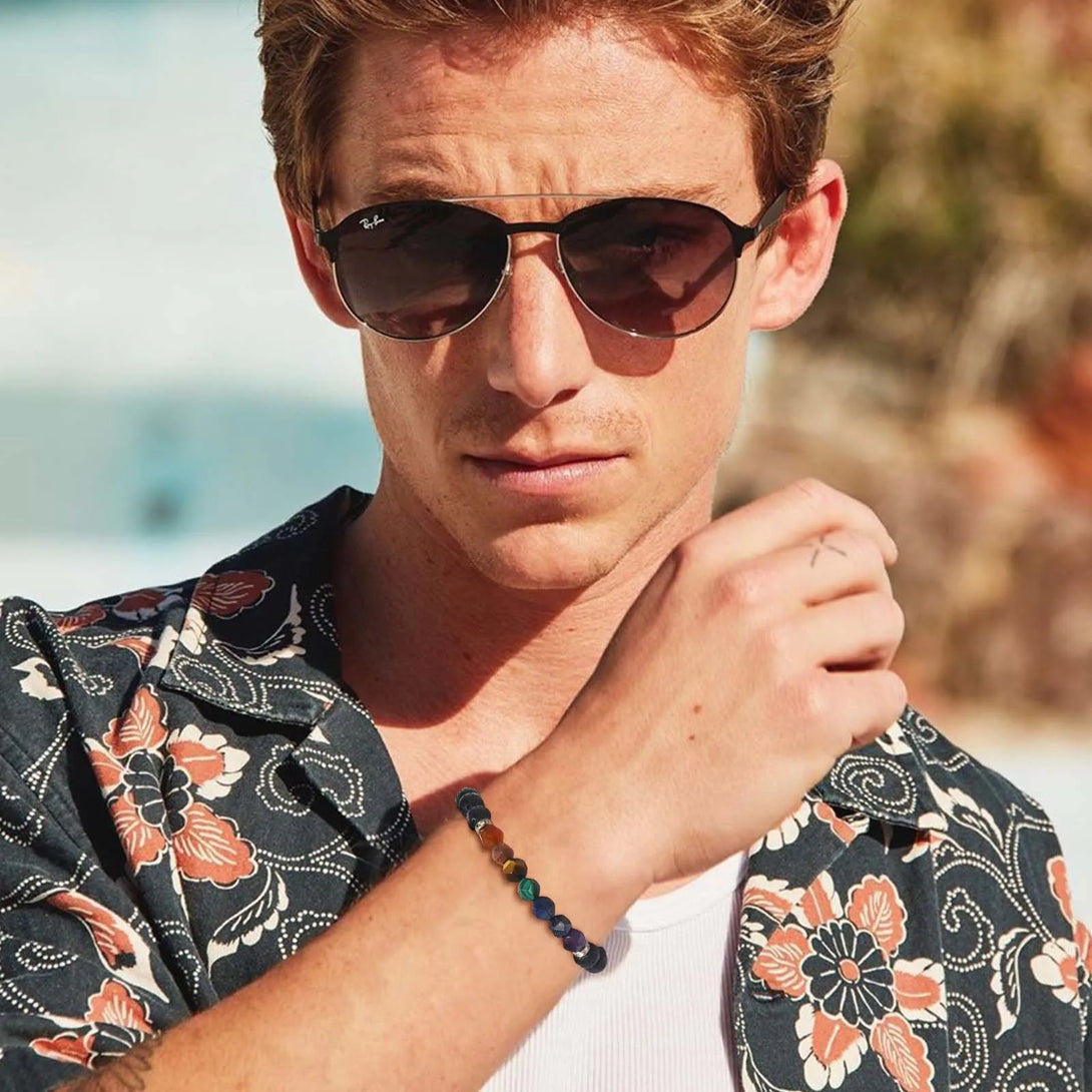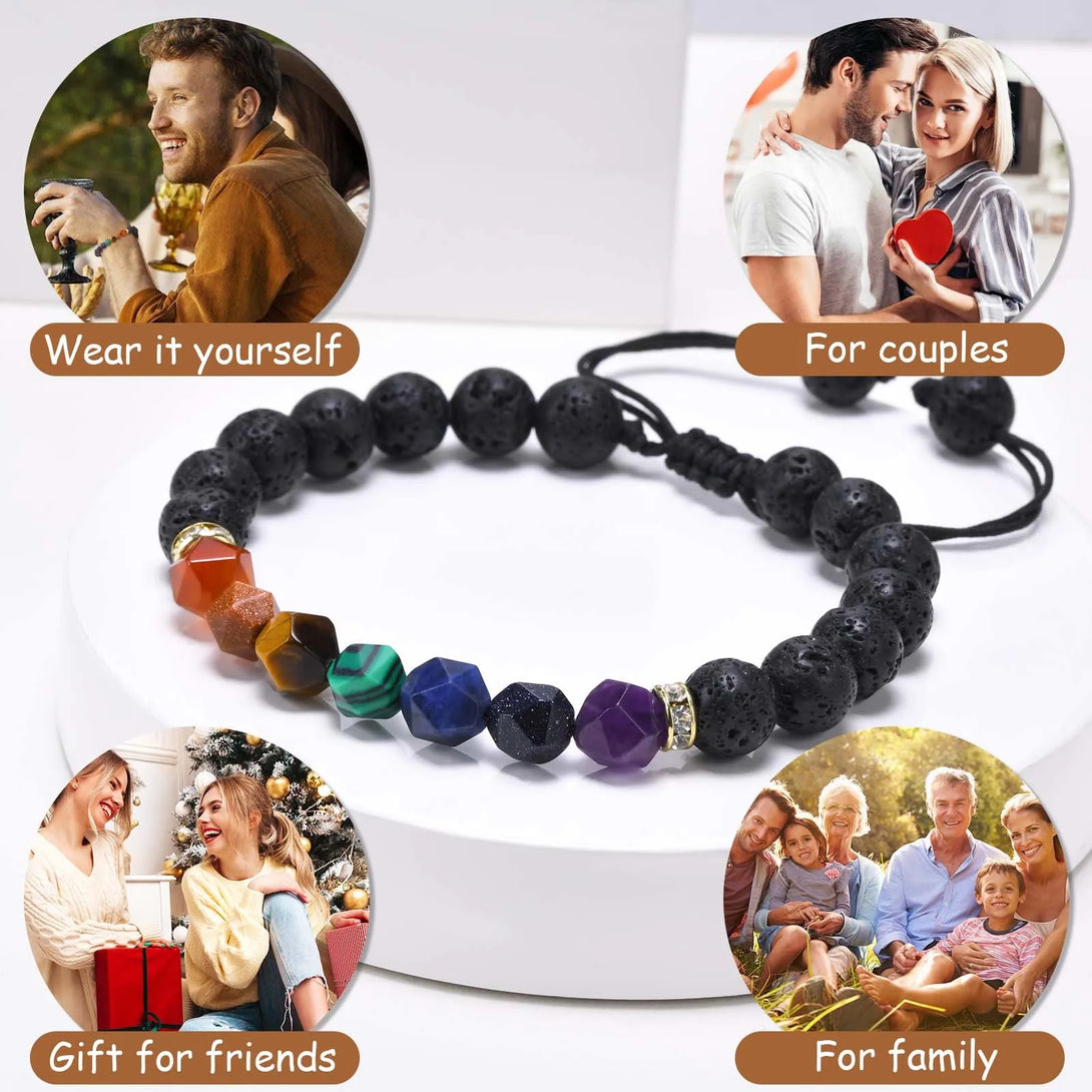 Black Natural Stone Bracelets for Men Boy Gifts, Lava Rock Beaded Wristband,Stress Relief Jewelry Gifts for Dad Grandpa Husband
