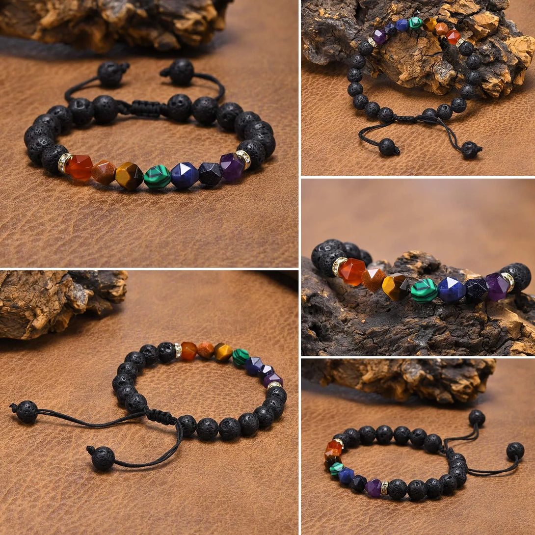 Black Natural Stone Bracelets for Men Boy Gifts, Lava Rock Beaded Wristband