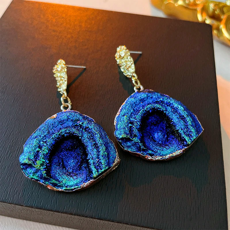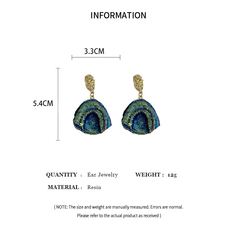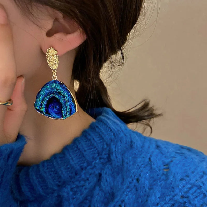 Blue Gradient Color Ocean Wave Earrings Creative Design Irregular Sector Shaped Drop Earrings