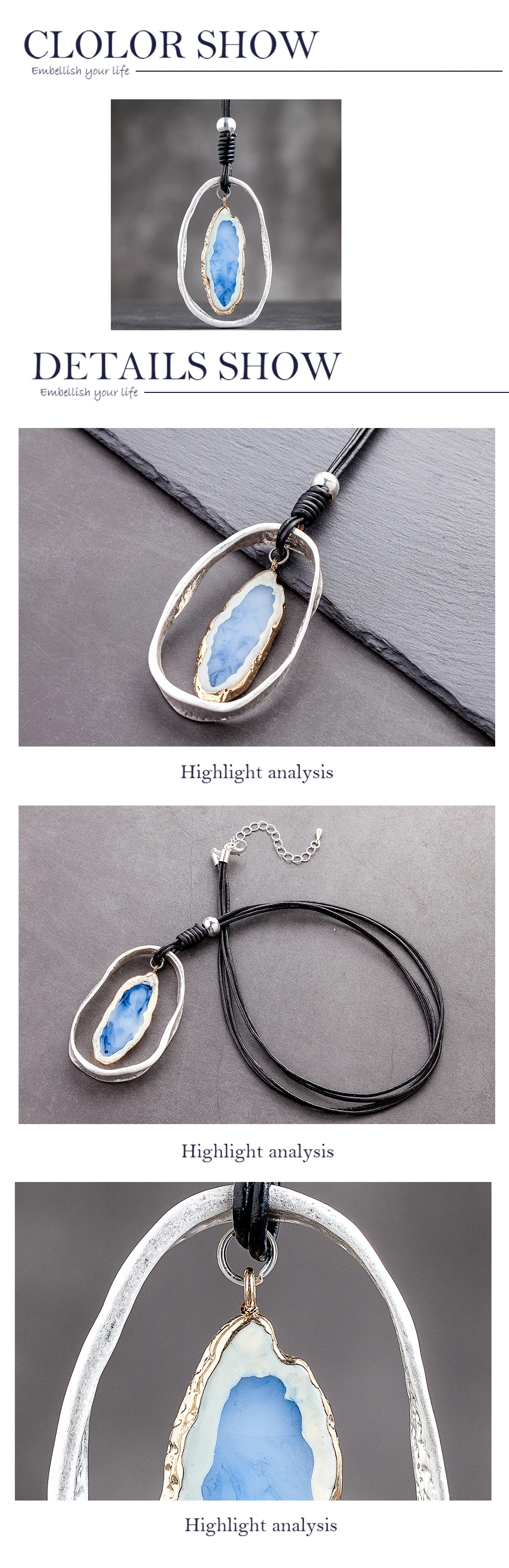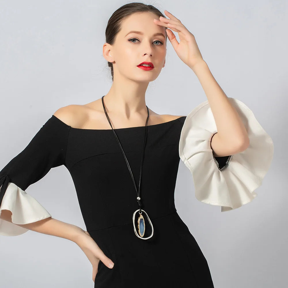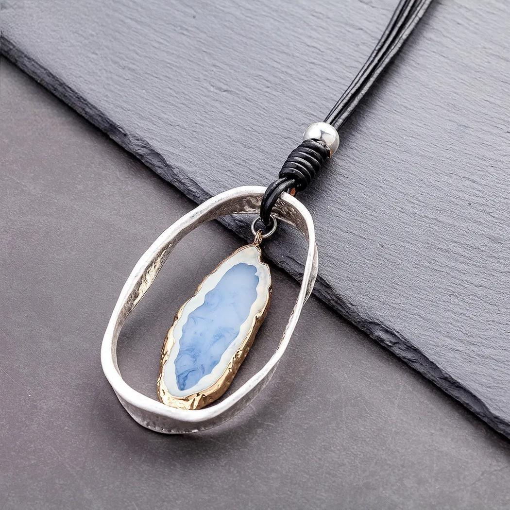 Blue Nature Stone Vintage Chokers Accessories Goth Jewlery Long Pendant Necklace