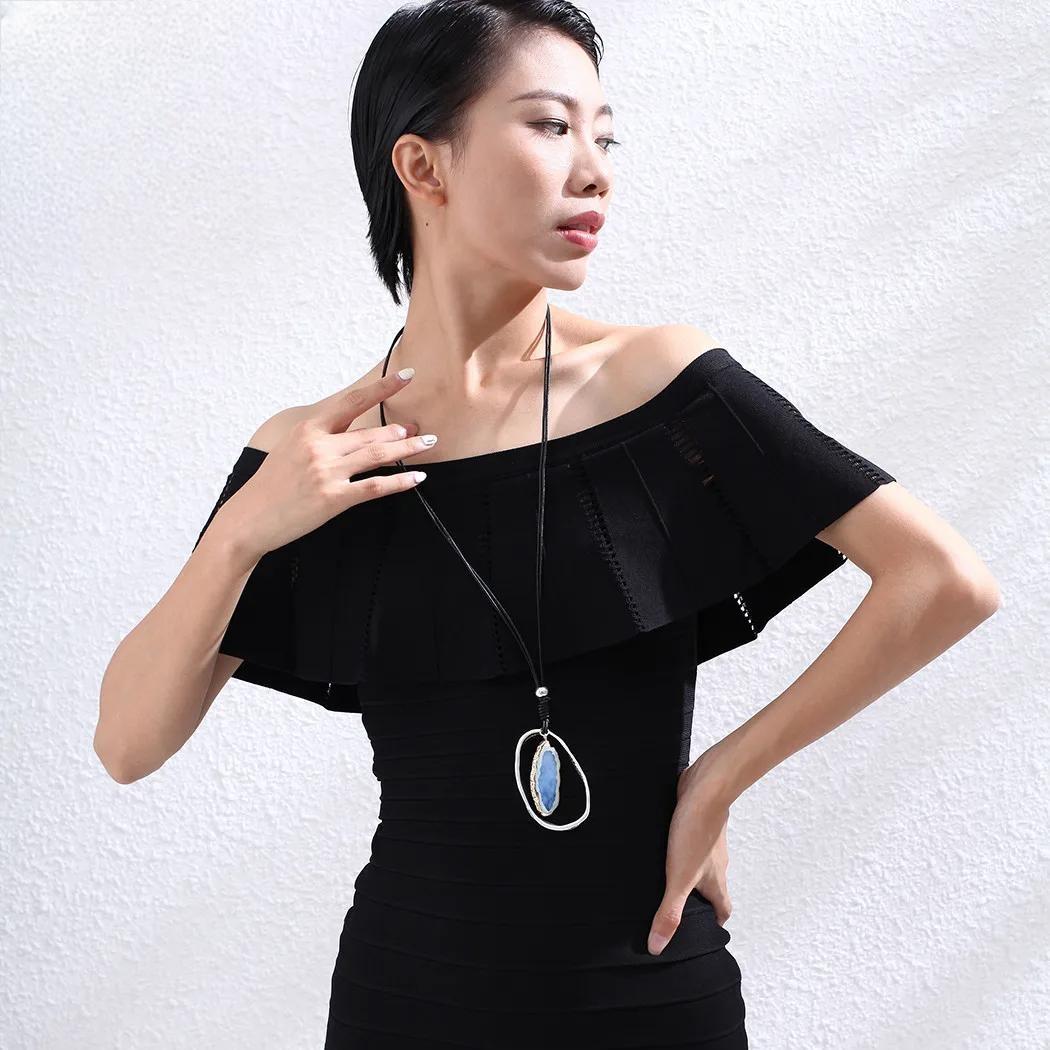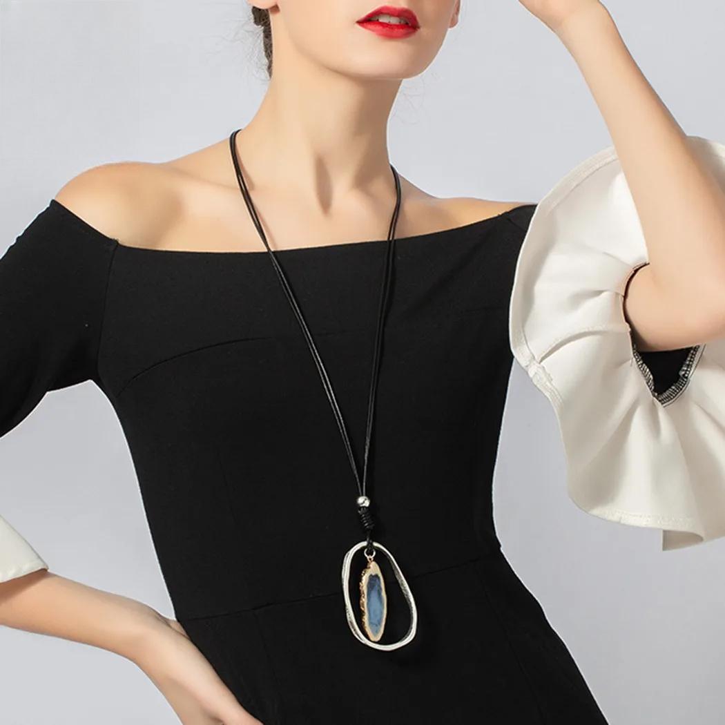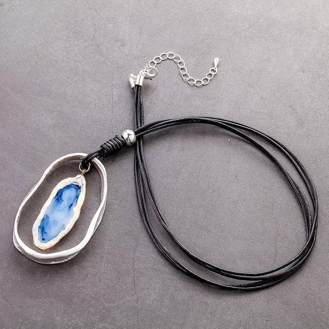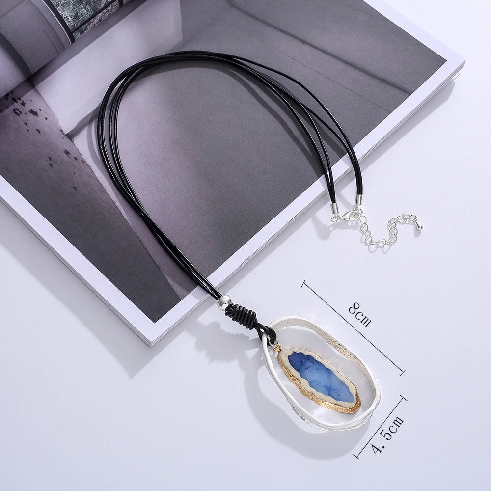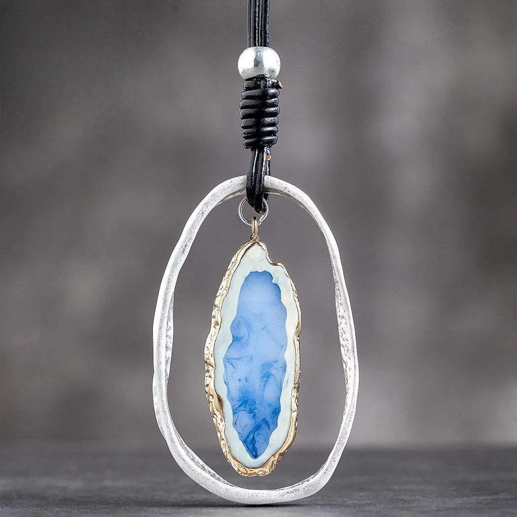 Blue Nature Stone Vintage Chokers Accessories Goth Jewlery Long Pendant Necklace Korean Fashion Jewelry Trending Products New in