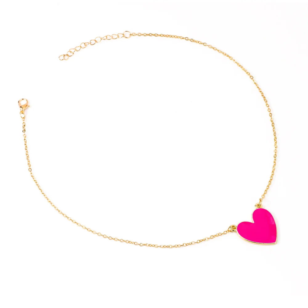 Bohemia Colorful Love Heart Pendant Necklace Earrings Sets for Women Gold Chain Statement Drip Oil Heart Jewelry Set Accessories