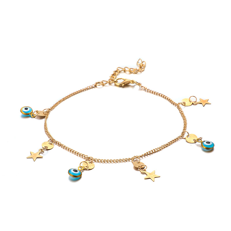Anklets- Bohemia Shell Evil Eye Star Charm Anklets for Women Elastic Strand Beaded Chain Anklet Beach Jewelry