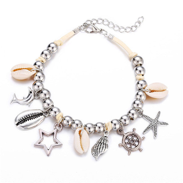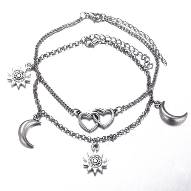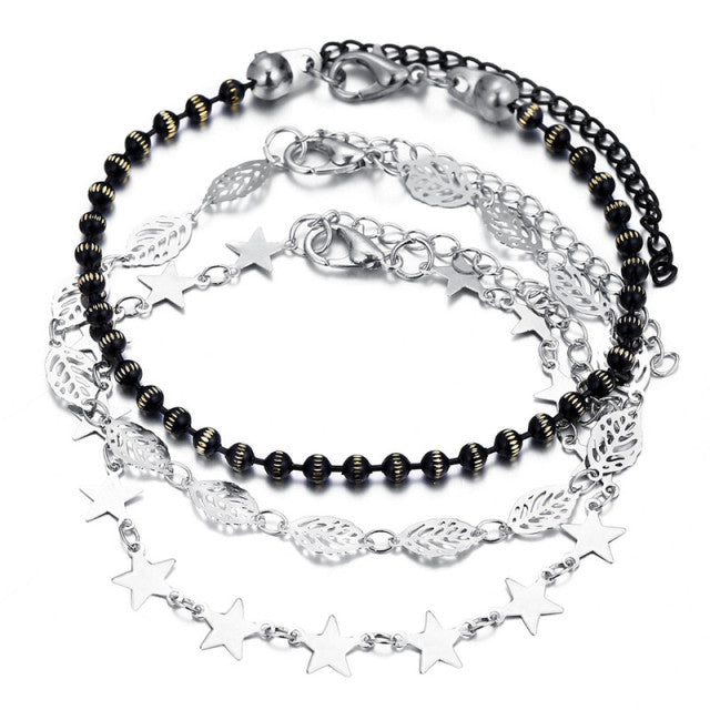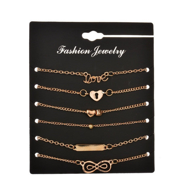 Anklets-Bohemian 6pcs/lot Anklets Sets For Women Anklet Bracelet on Leg Gold Heart Love Bar Infinity Foot Chain Ankle Beach Jewelry