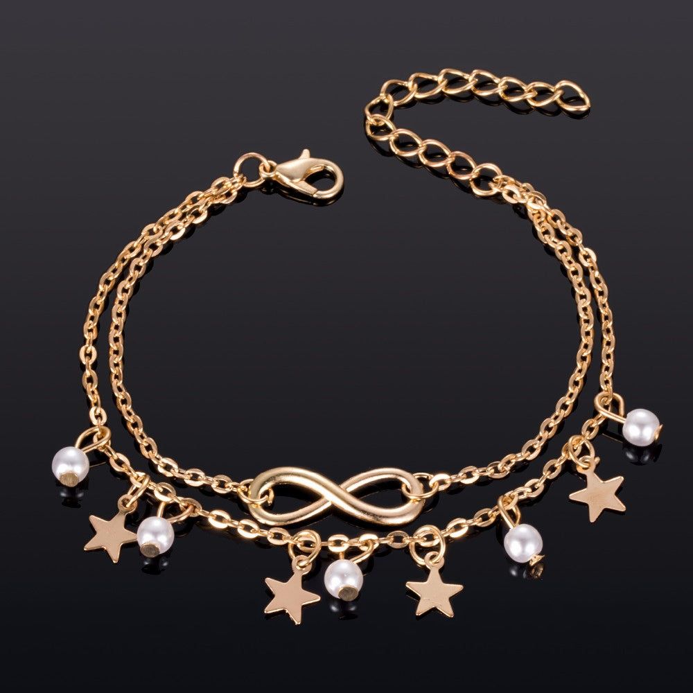 Anklets- Boho Gold Color Star Infinity Anklets Fashion Multilayer Foot Chain New Simulated Pearl Anklet Bracelet for Women Beach Jewelry