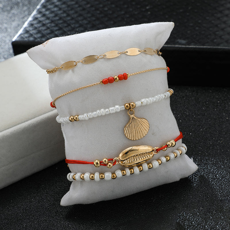Anklets- Boho Gold Shell Cowrie Anklet Set for Women Black Weaving White Pearl Charms Beaded Anklet Foot Chain Jewelry