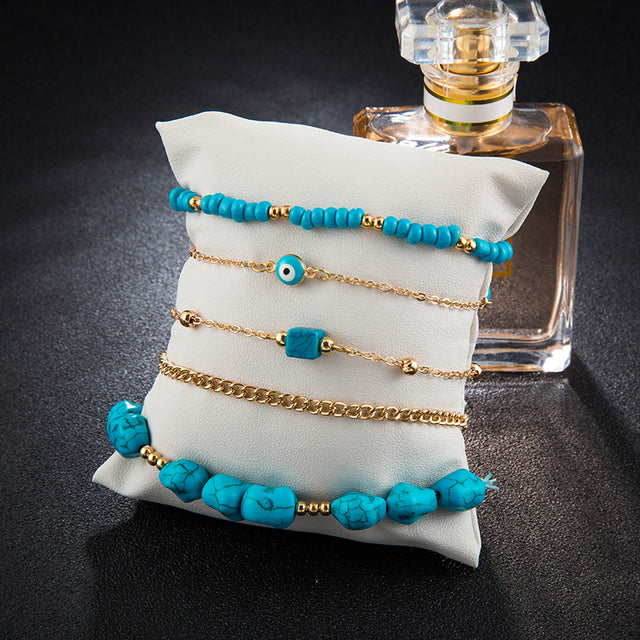 Anklets- Boho Handmade Shell Seed Beads Anklet Set for Women Multilayer Broken Stones Summer Ocean Beach Foot Chains Jewelry