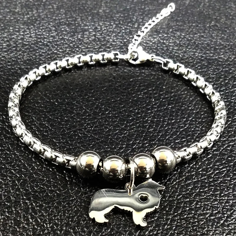 Border Collie Dog Stainless Steel Charm Bracelet for Women Silver Color Dog Bracelet jewellery pulseras