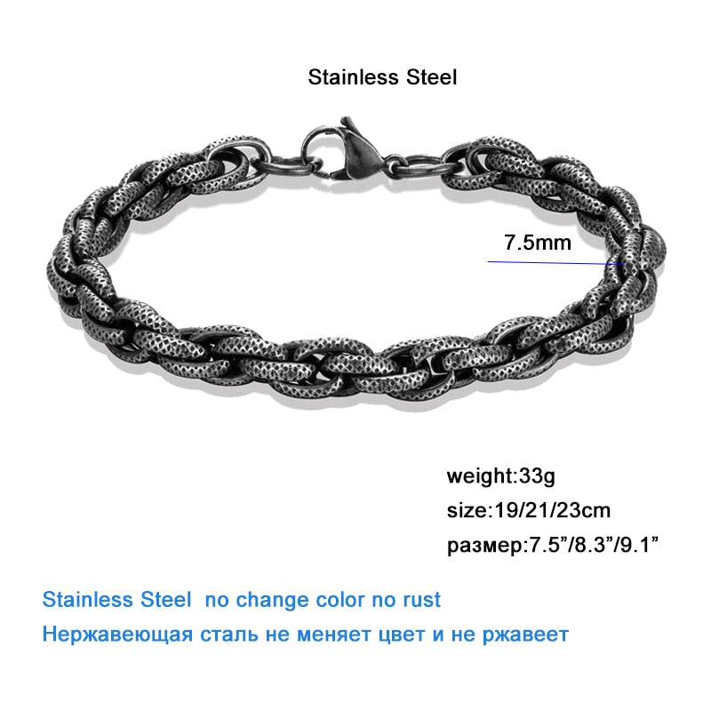 Bracelet Men Vintage Chain Link Handmade Punk Rock Stainless Steel Motorcycle Hand Jewelry Accessories