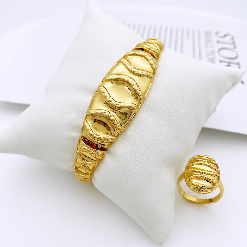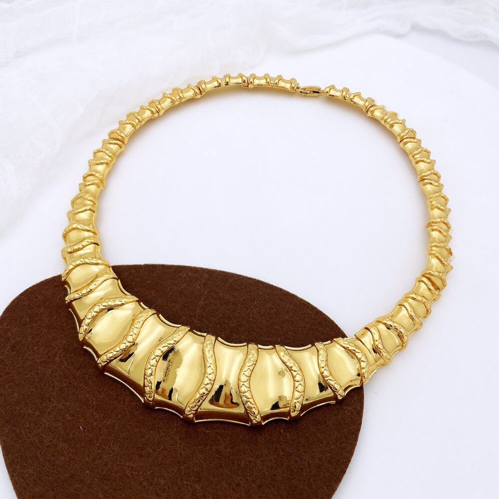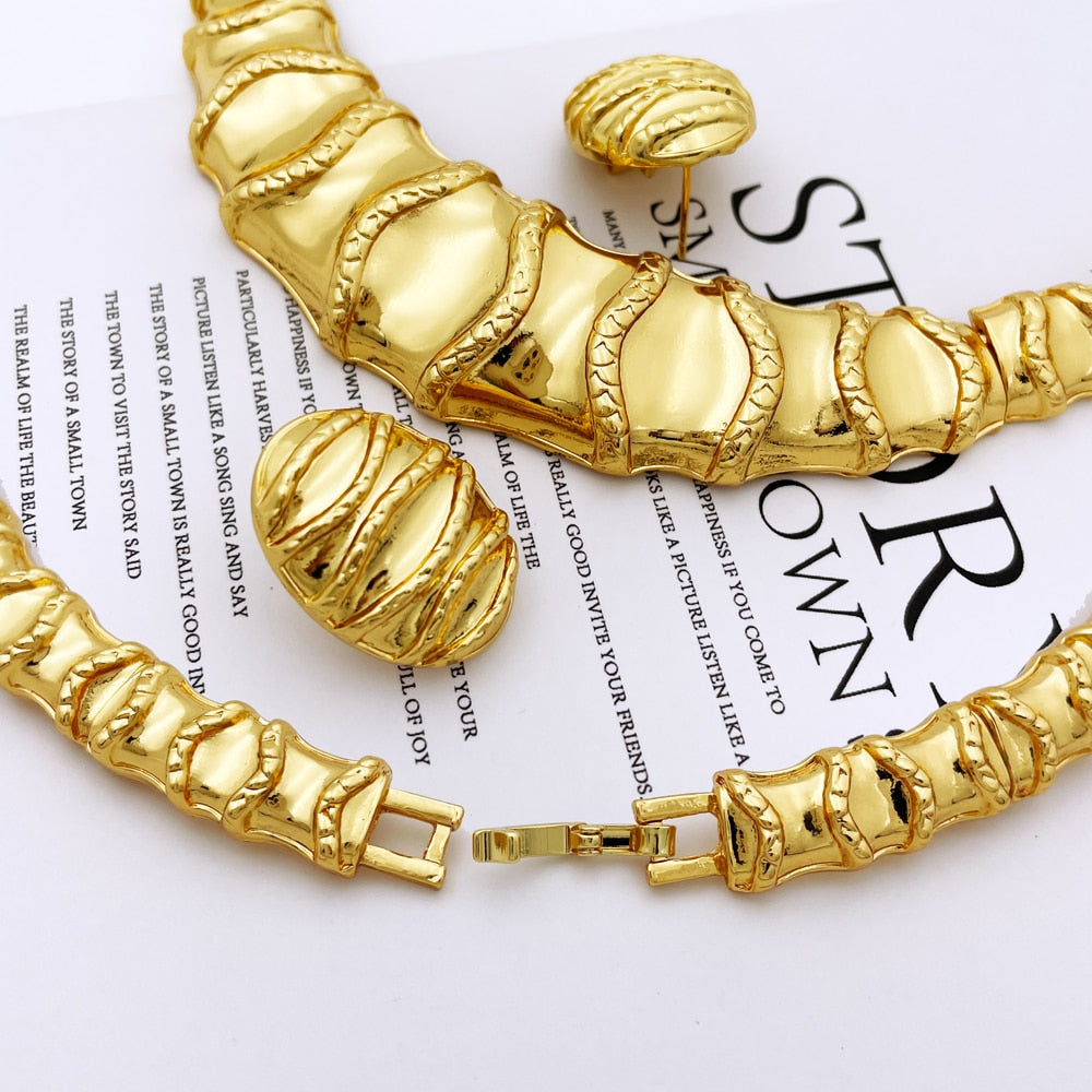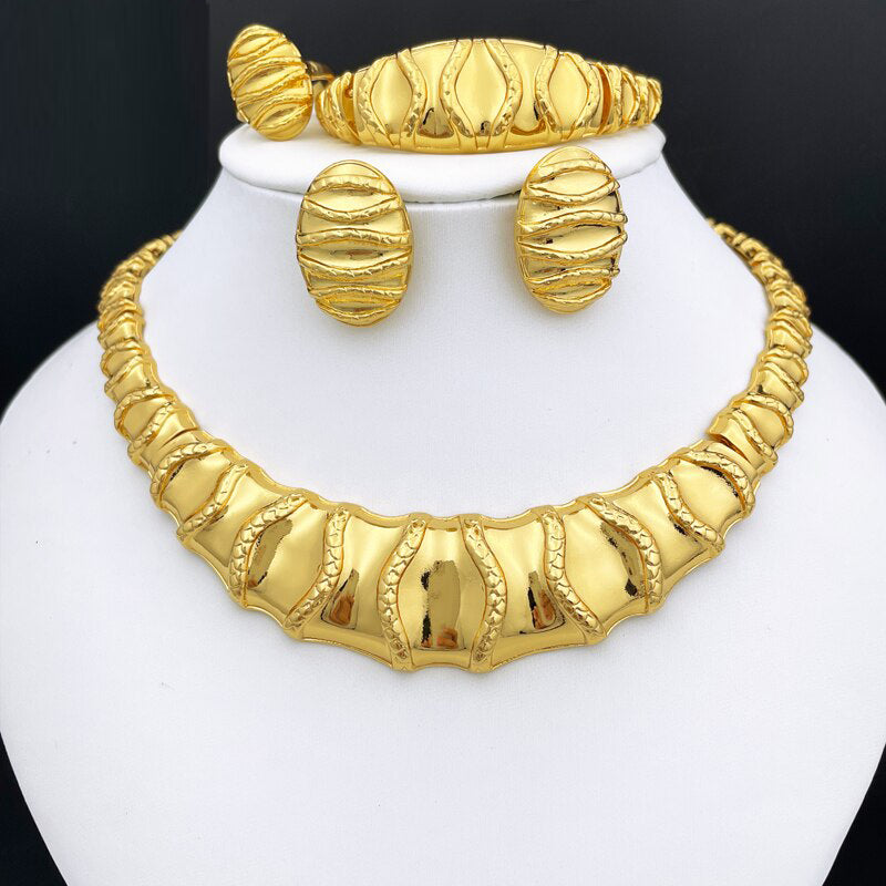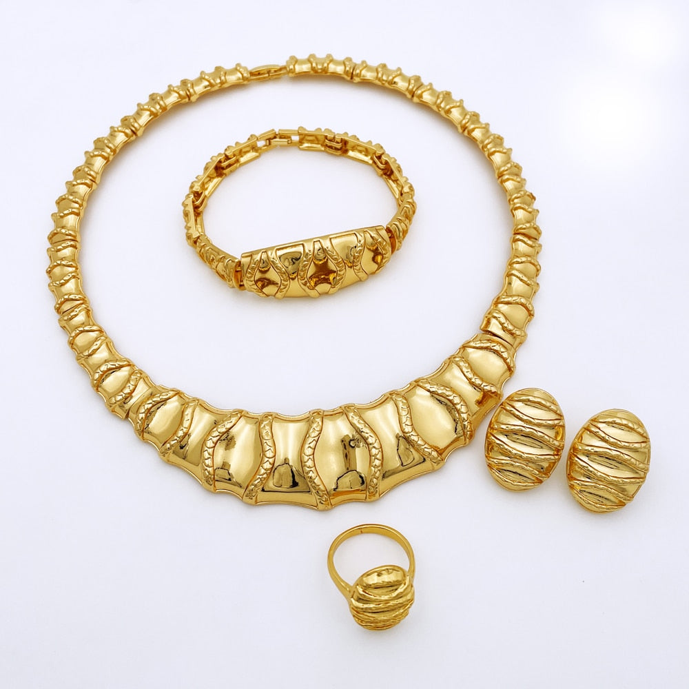 Afraic Jewelry-24k Brazil Gold Color Jewelry Set Women Prom Necklace Earrings Charm Bracelet Wedding Party Jewelry