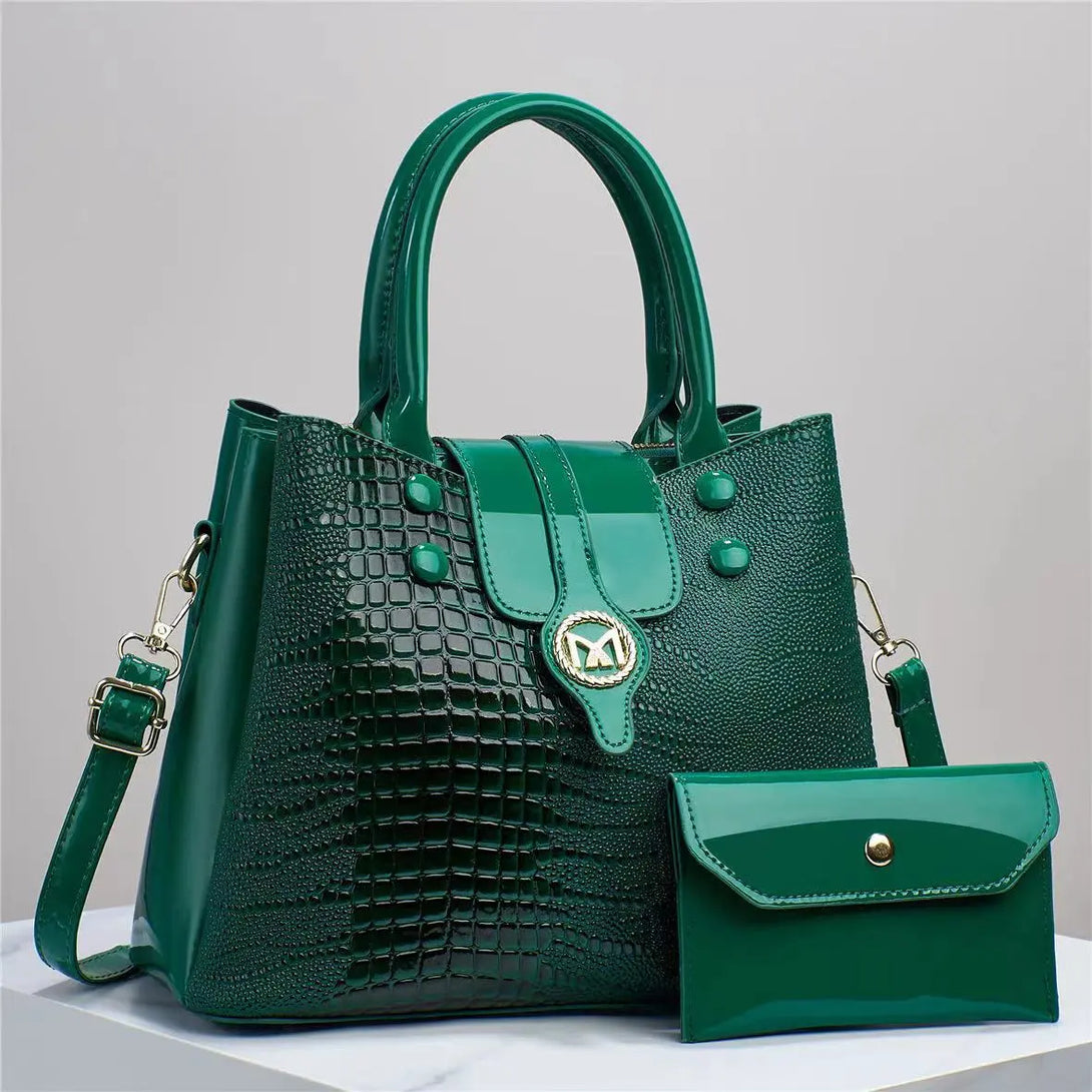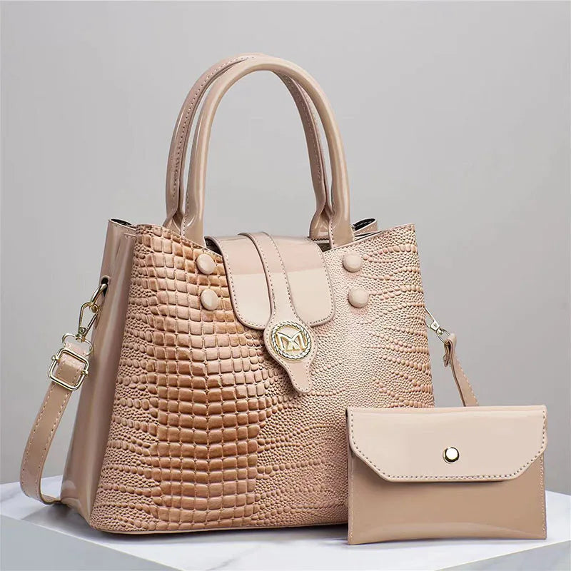 Bright Leather Crocodile Pattern Women's Business Tote Handbag Fashion Single Shoulder Composite Bag Light Luxury Crossbody Bags