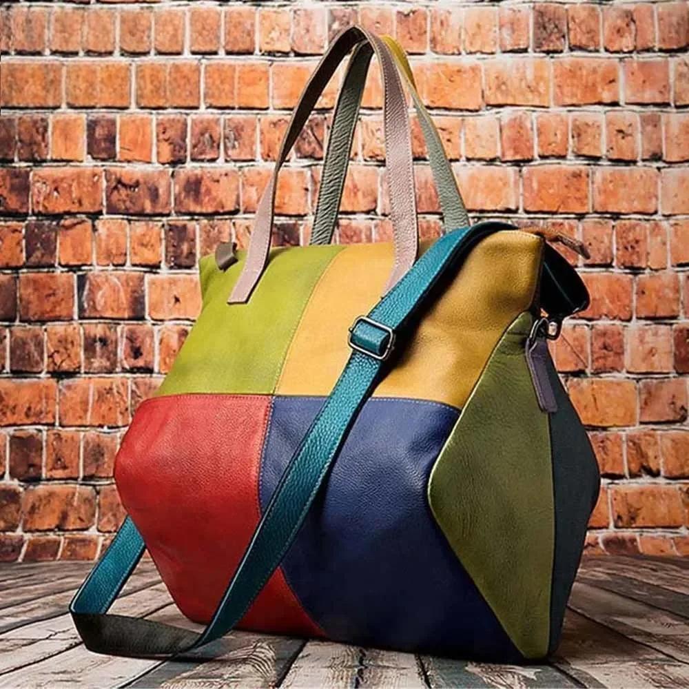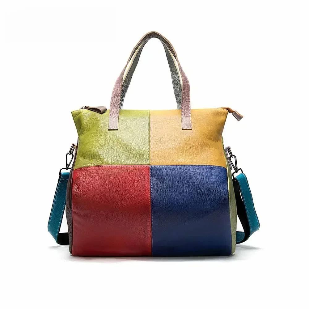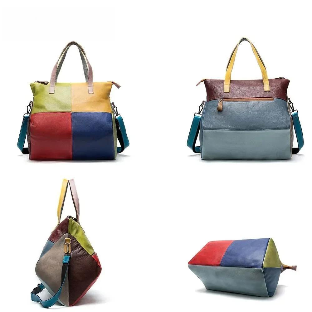 Oversized Women Tote Bag Genuine Leather Shoulder Bag Calfskin Vintage Style Patchwork Super LargeShopper Bag Women Trend