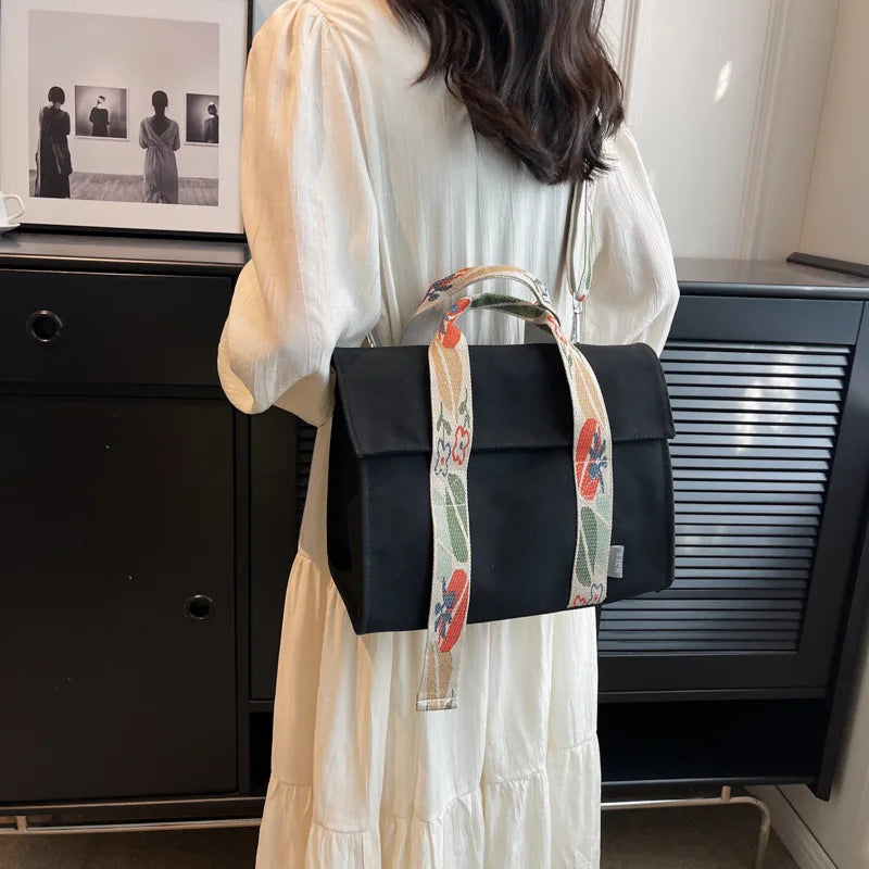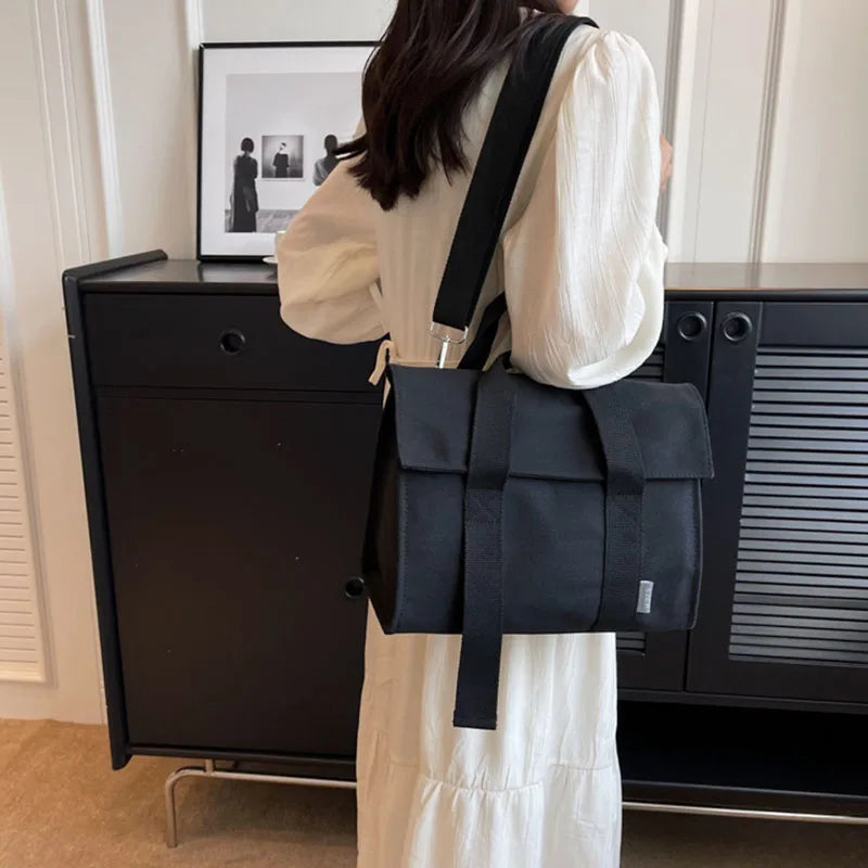Canvas Casual Commuter Single Shoulder Bag Fashion Wide Shoulder Strap Crossbody Bag