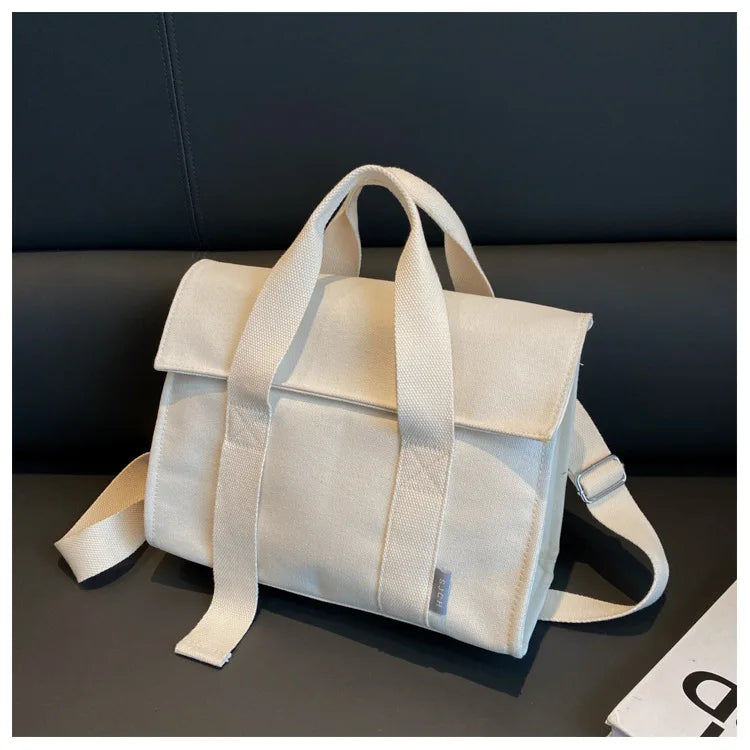 Canvas Casual Commuter Single Shoulder Bag Fashion Wide Shoulder Strap Crossbody Bag Women's New Simple Tote Handbag Versatile