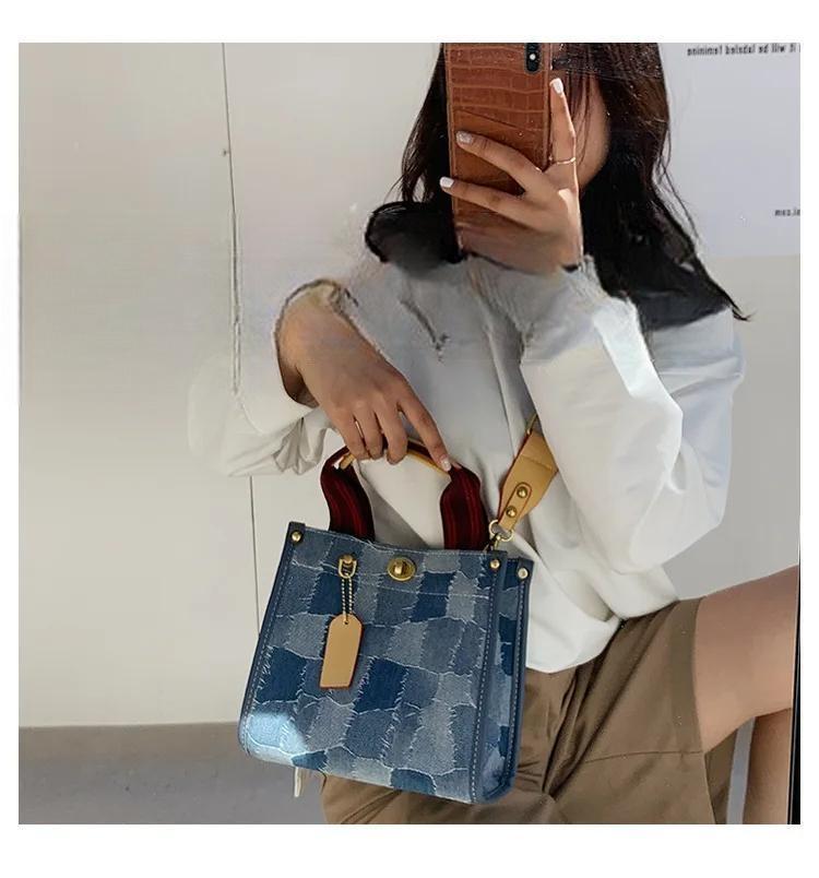 Canvas Large Capacity Shoulder Crossbody Bags Women's New Fashion Retro Geometric Grid Tote Bag Travel Portable Storage Handbags