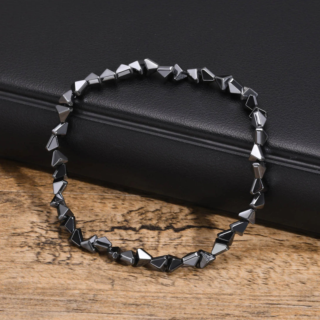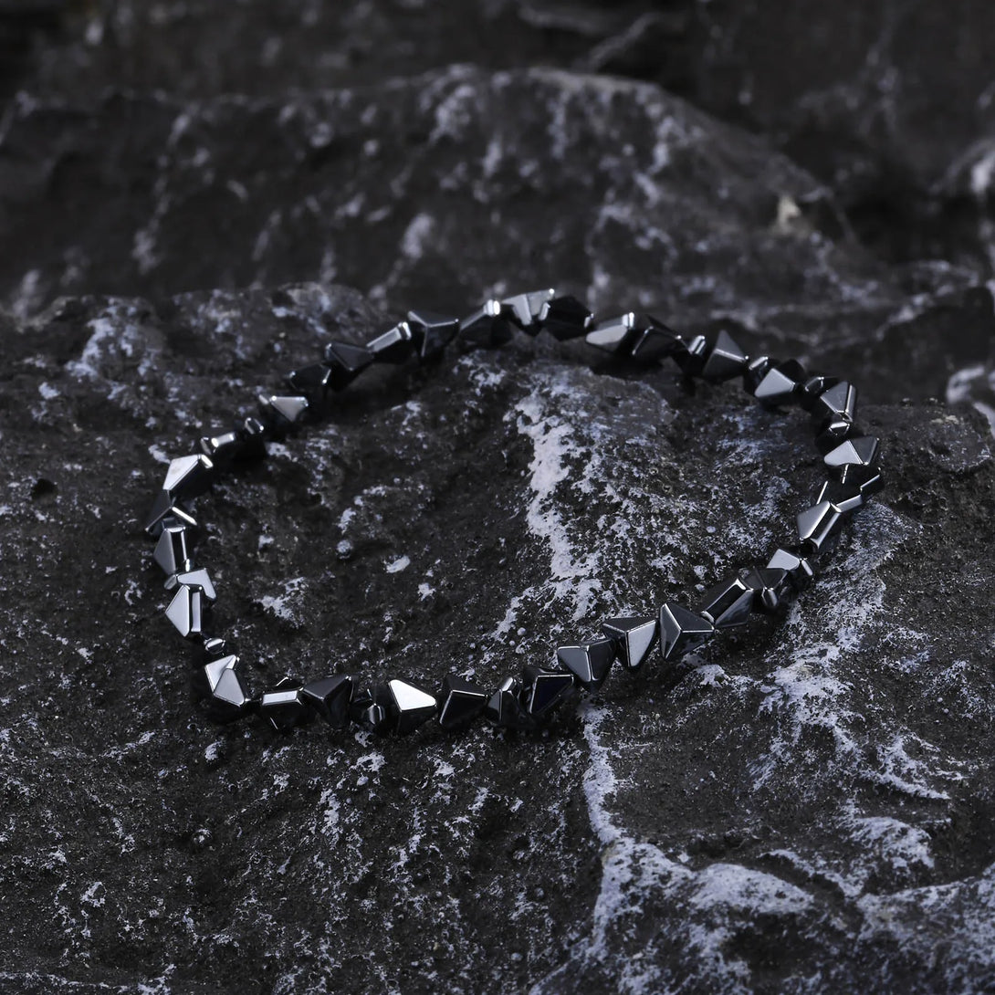 Casual Black Triangle Beads Bracelets for Men Boys,Geometric Cut Beaded Wristband
