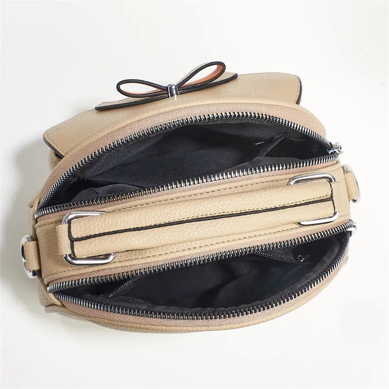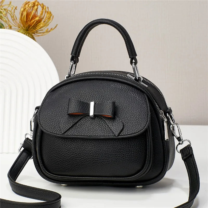 Casual Cute Bowknot New Fashion Ellipse Bag Solid Color Leather Simple Single-shoulder Crossbody Bag for Women Portable Handbag
