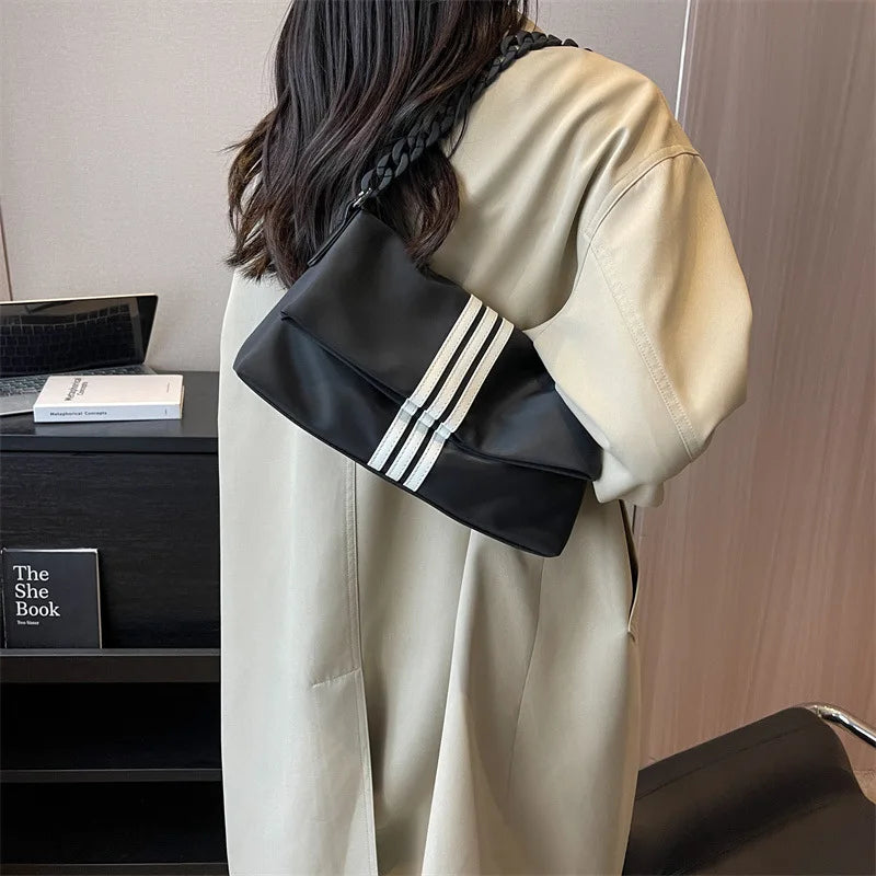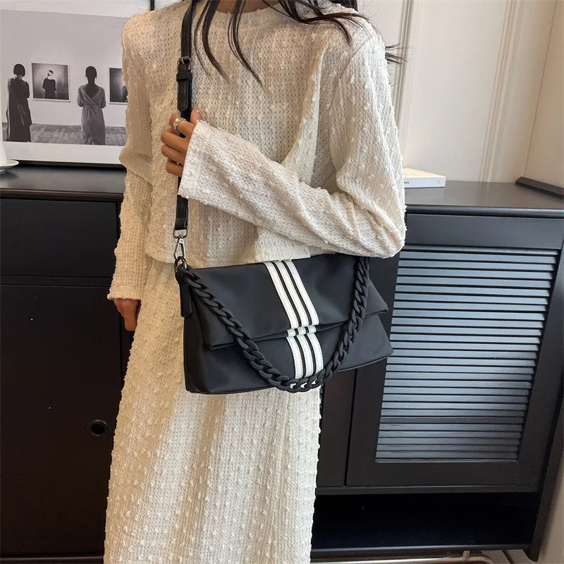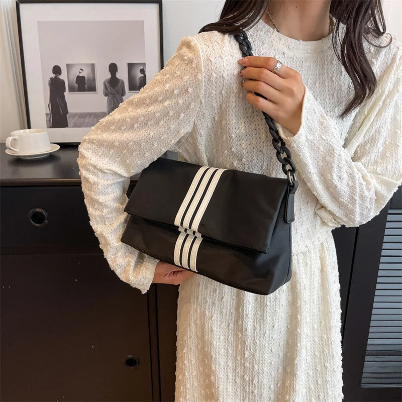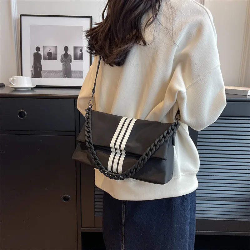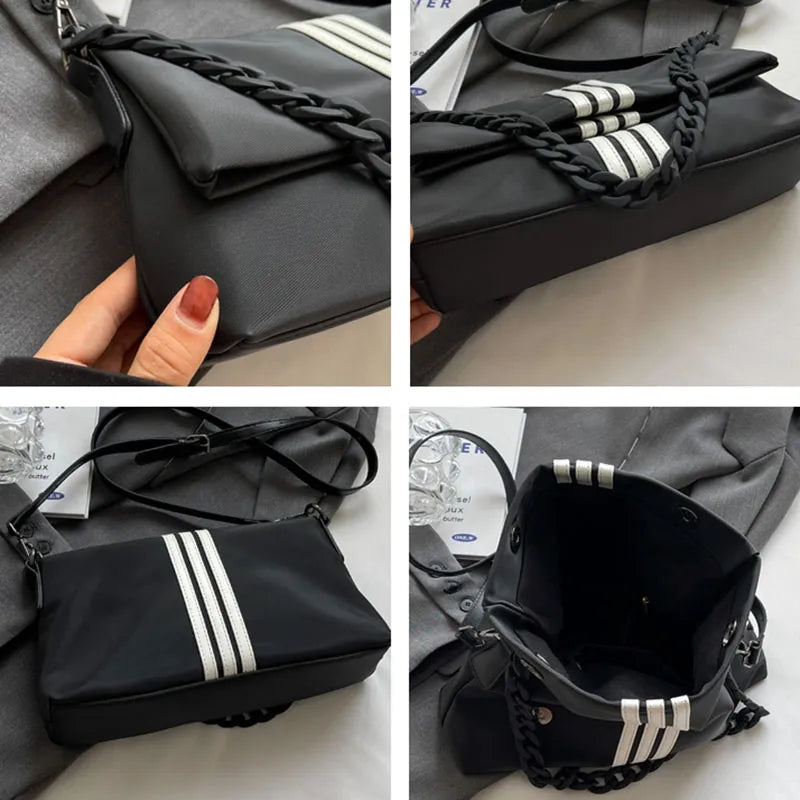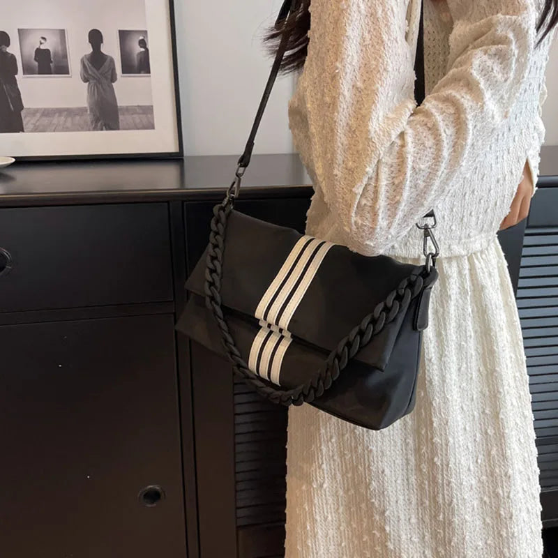 Chain Trendy Fashion Flip Single Shoulder Bag Oxford Stripe Commuting Adjustable Shoulder Strap Crossbody Bags Storage Handbag