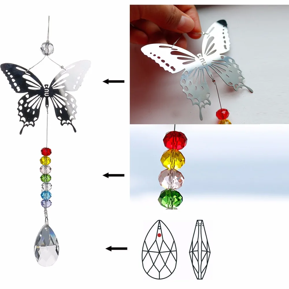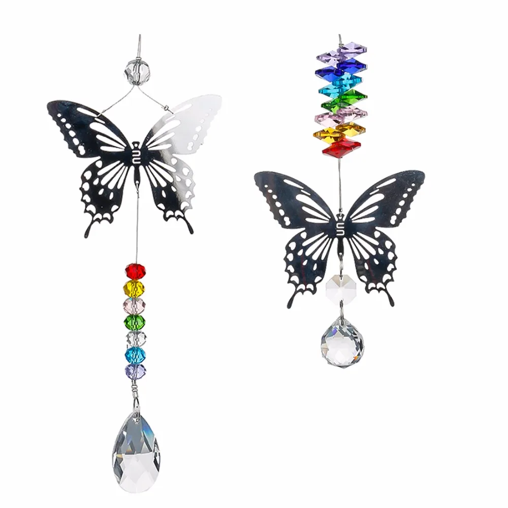 Crystal prism-Chakra Crystal Prisms Suncatchers Pendant Butterfly Ornament Hanging for Windows Rainbow Maker Christmas Tree Decor Gift