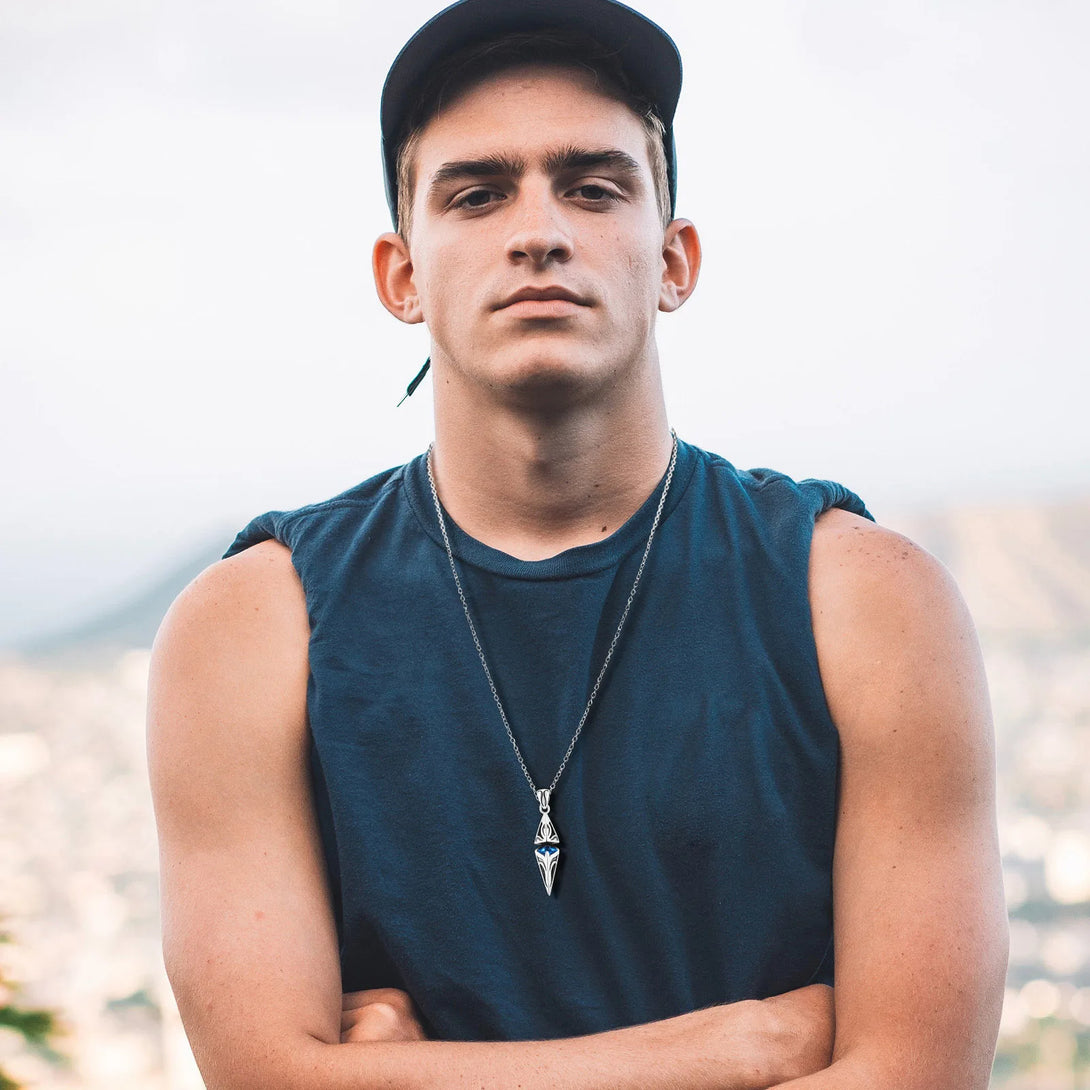 Chic Blue Stone Necklaces for Men,Stainless Steel Geometric Pendant Collar,Valentine's Birthday Party Gift for Him