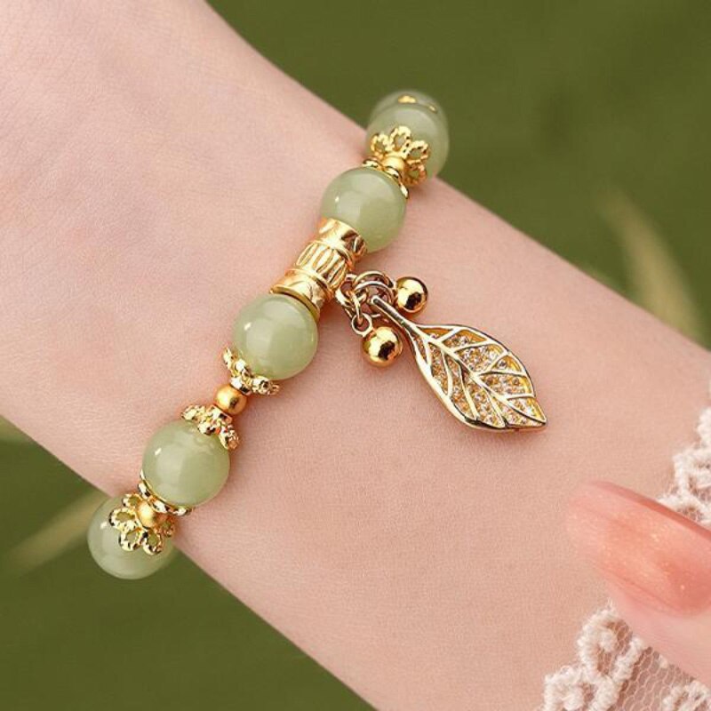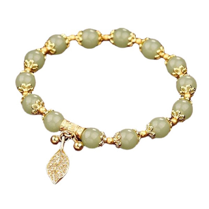 Bracelets-Classic Ancient gold craft bangles natural Hotan Jade leaf exquisite Bracelet for women fresh Charm Party wedding jewelry
