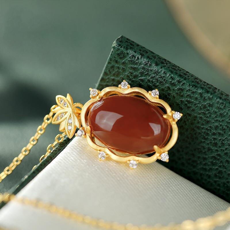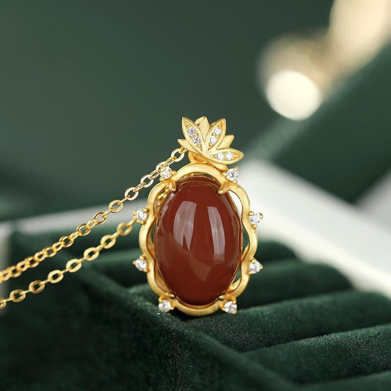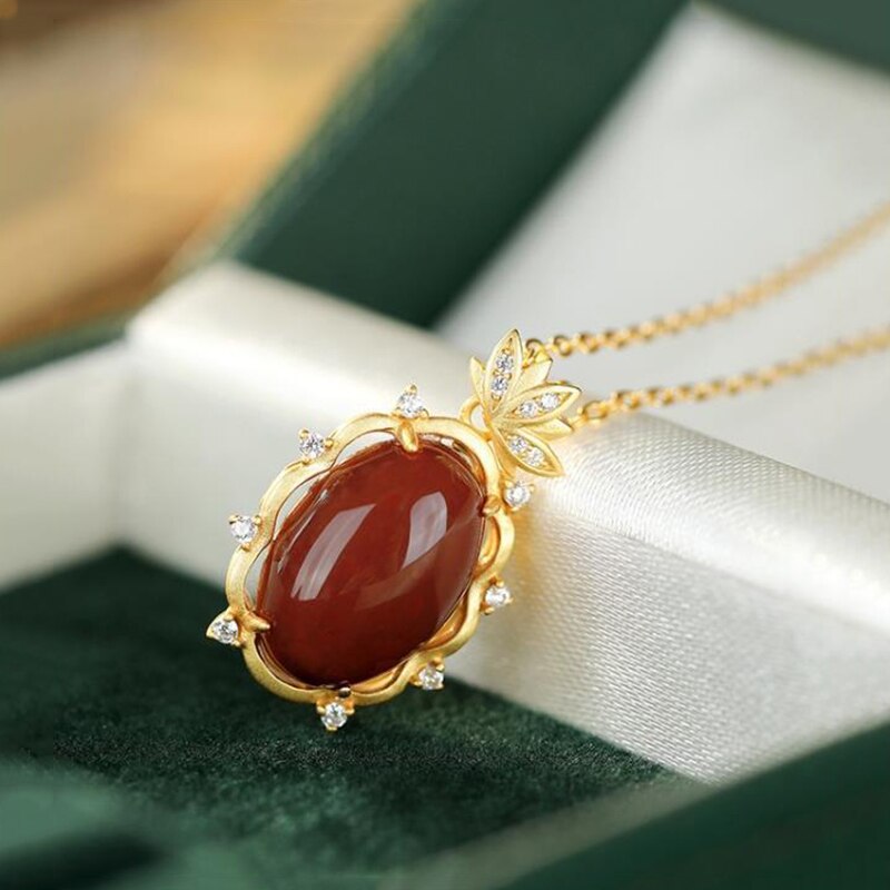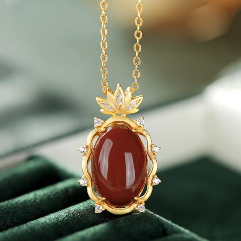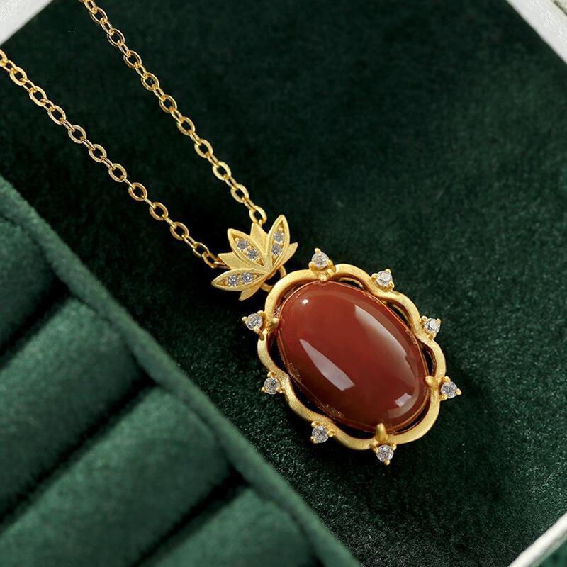 Pendants-Classic Diamond Red Enamel Porcelain Oval Pendant Necklace Palace Style Unique Ancient Gold Craft Ladies Silver Jewelry