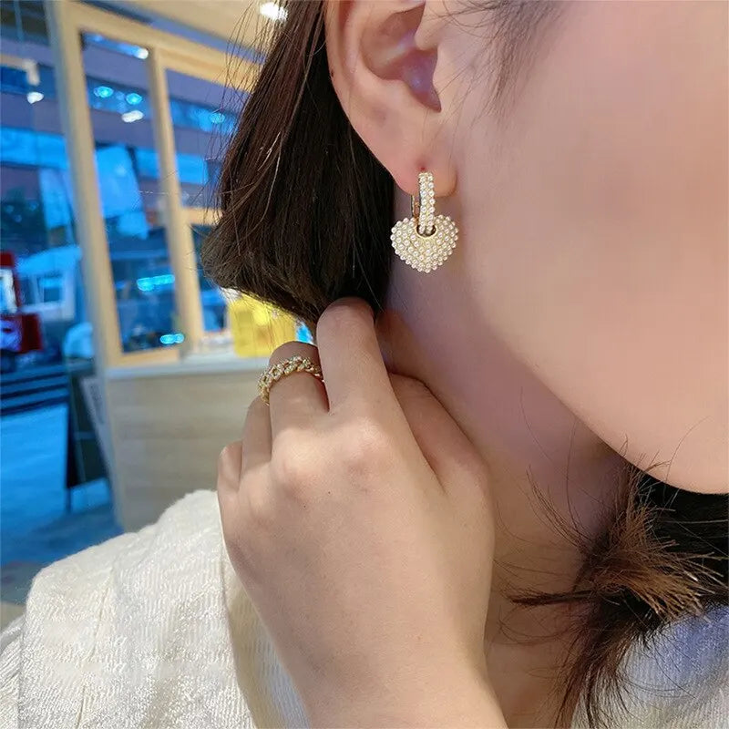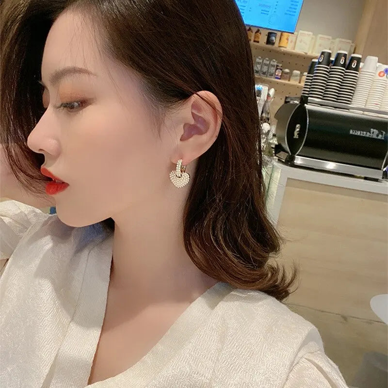 Classic Elegant Imitation Pearl Earrings For Women Heart Dangle Earrings Geometric Circle Drop Earrings Daily Wear Ear Jewelry