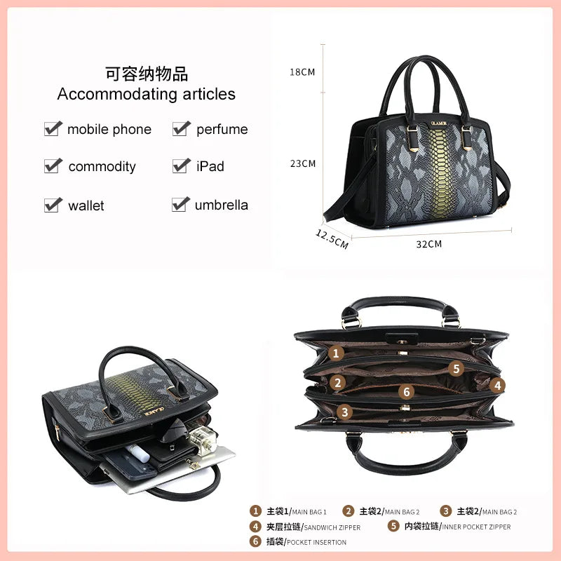 Classic Retro High Quality Handbag Women's Tote Bag PU Python Pattern Trend 2024 Designer Luxury Business Shoulder Crossbody Bag