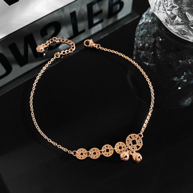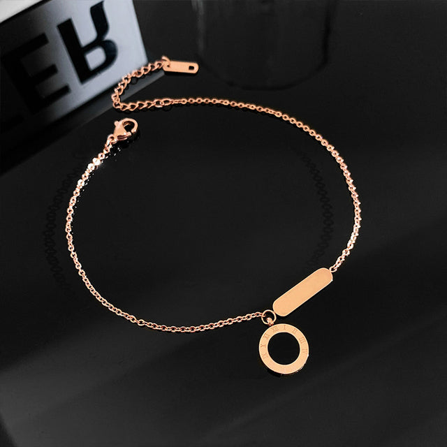 Anklets- Classic Roman Numeral Circle Titanium Steel Anklets For Woman Korean Fashion Jewelry Beach Girl's Ankle Accessories Anklet