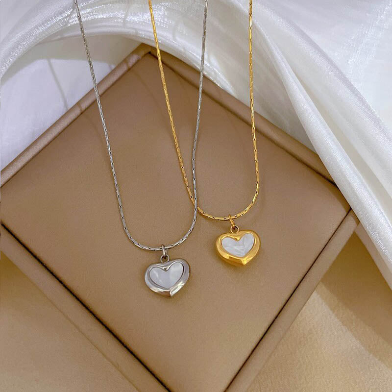 585 Gold Jewelry-Titanium Steel Classic Simple Shell Heart Pendant Short Necklace For Korean Fashion Jewelry Girl's Accessories