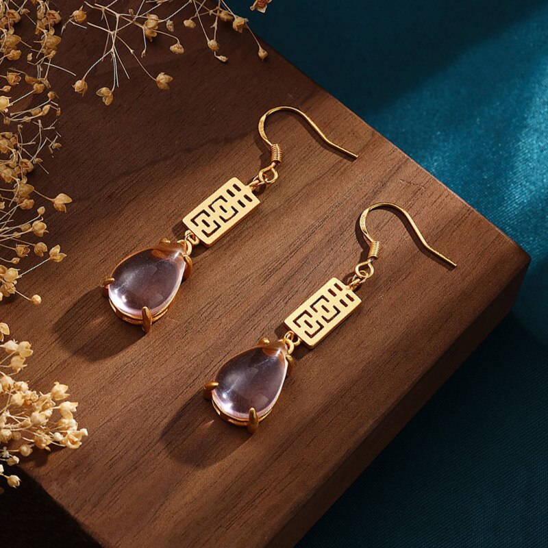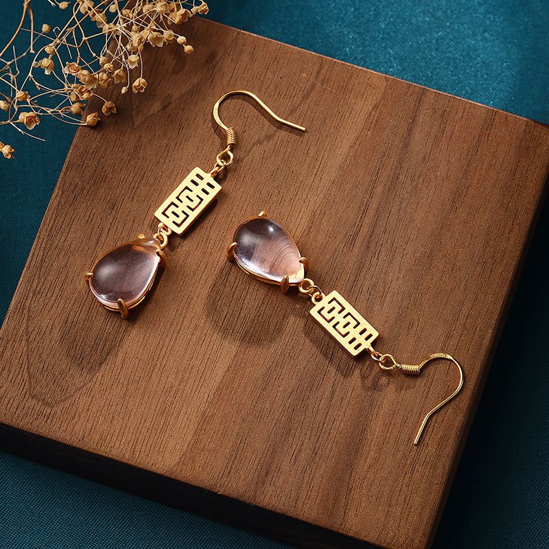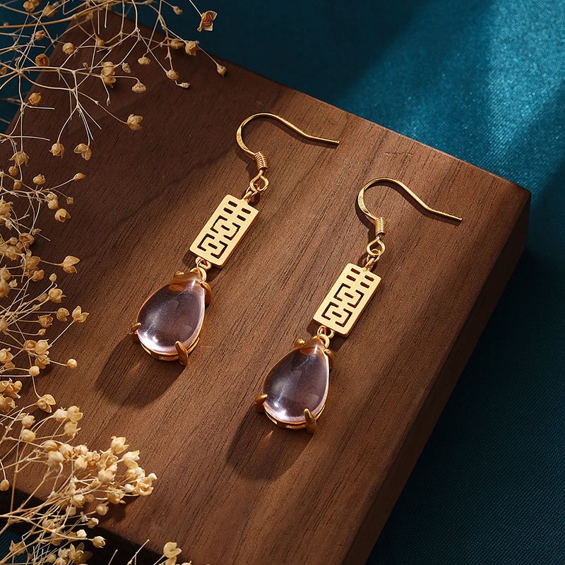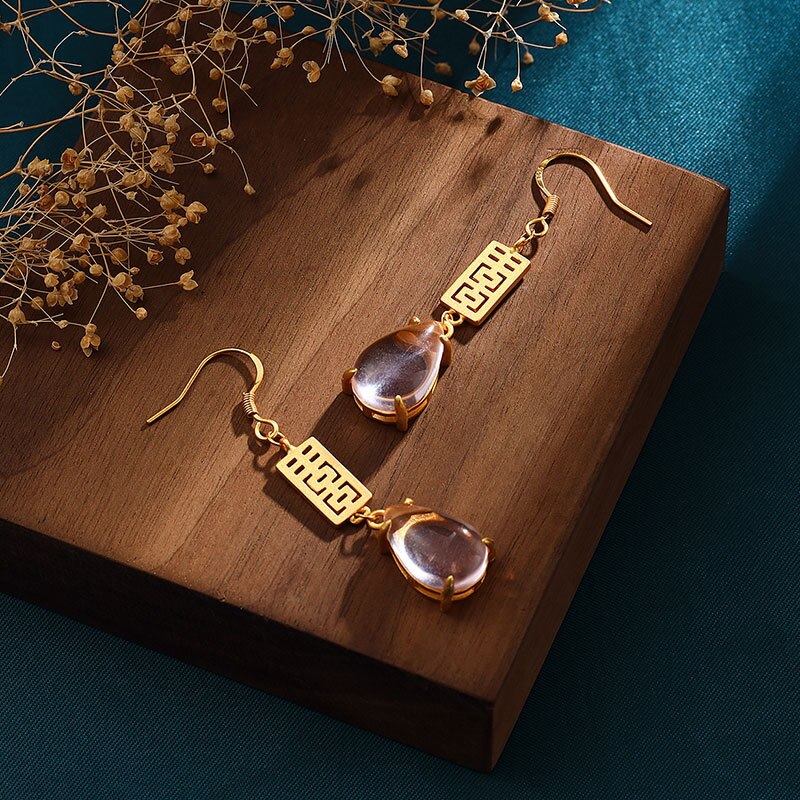 Classic style natural water drop chalcedony vintage tassel earrings for women