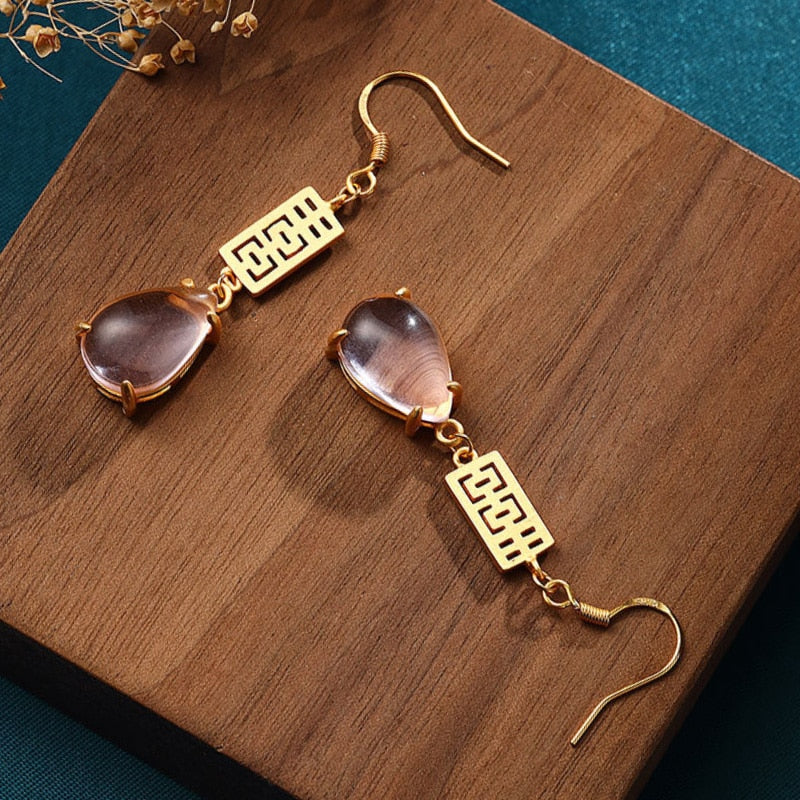 Drop Earrings-Classic style natural water drop chalcedony vintage tassel earrings for women long ear hook Chinese dress cheongsam jewelry