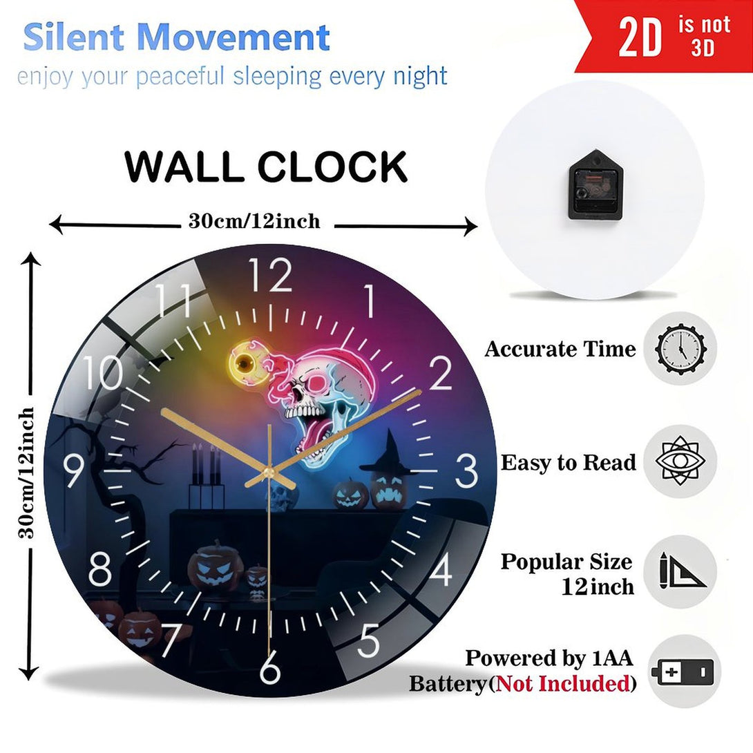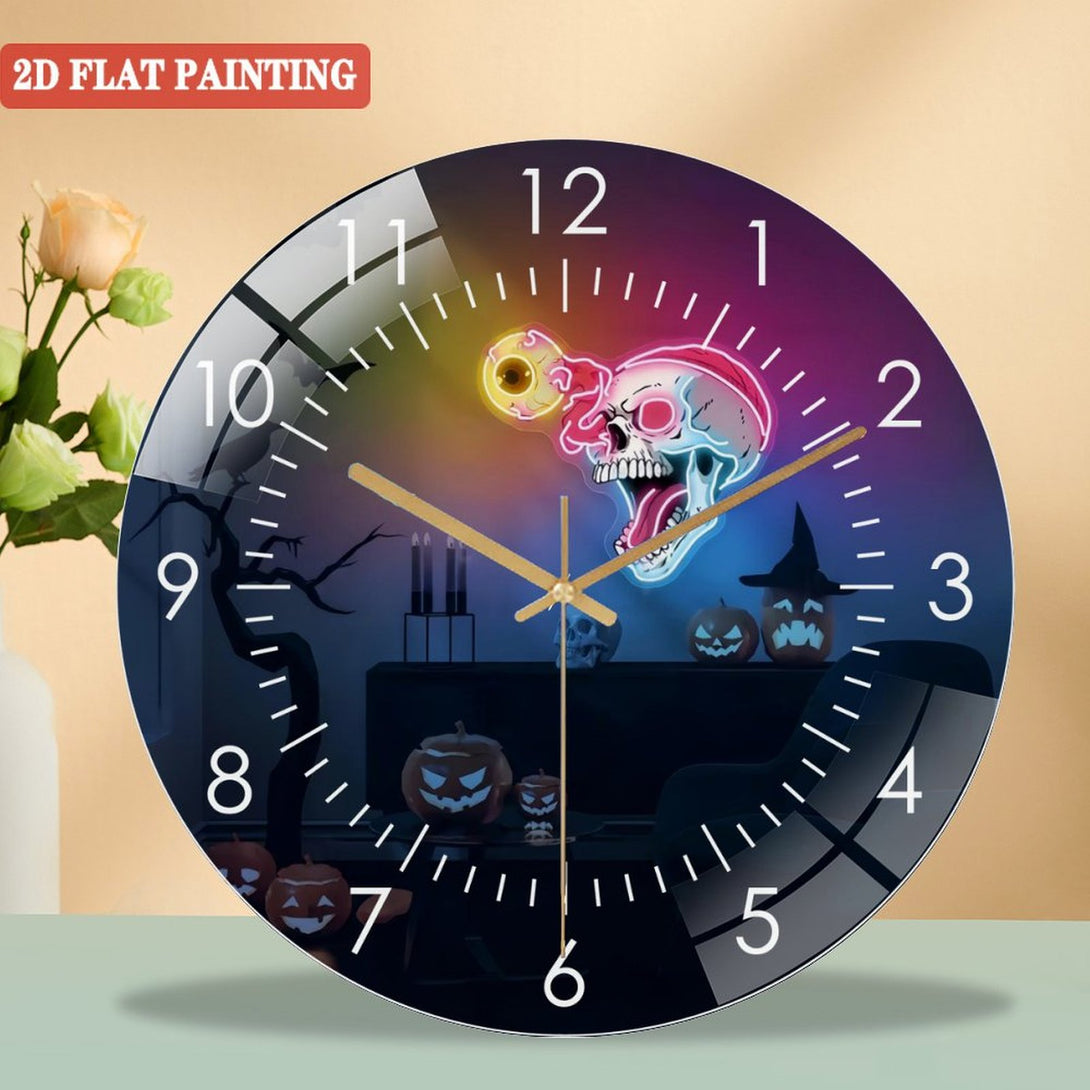 Eyeball Skull Glass Wall Clocks,Halloween Glass Wall Clocks for Living Room, Kitchen, Bedroom And Office.for Gift Home Wall Decor.