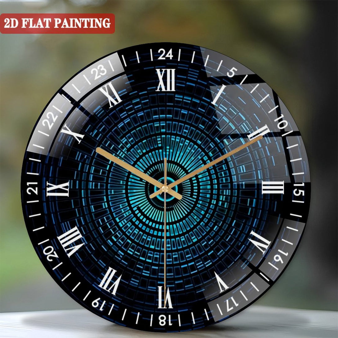 Futuristic Circular Wall Art Glass Wall Clock, Sci-fi Inspired Interiors Decor Wall Clock for Homes, Bars, Offices, Man Caves, Garages, And Living Rooms.