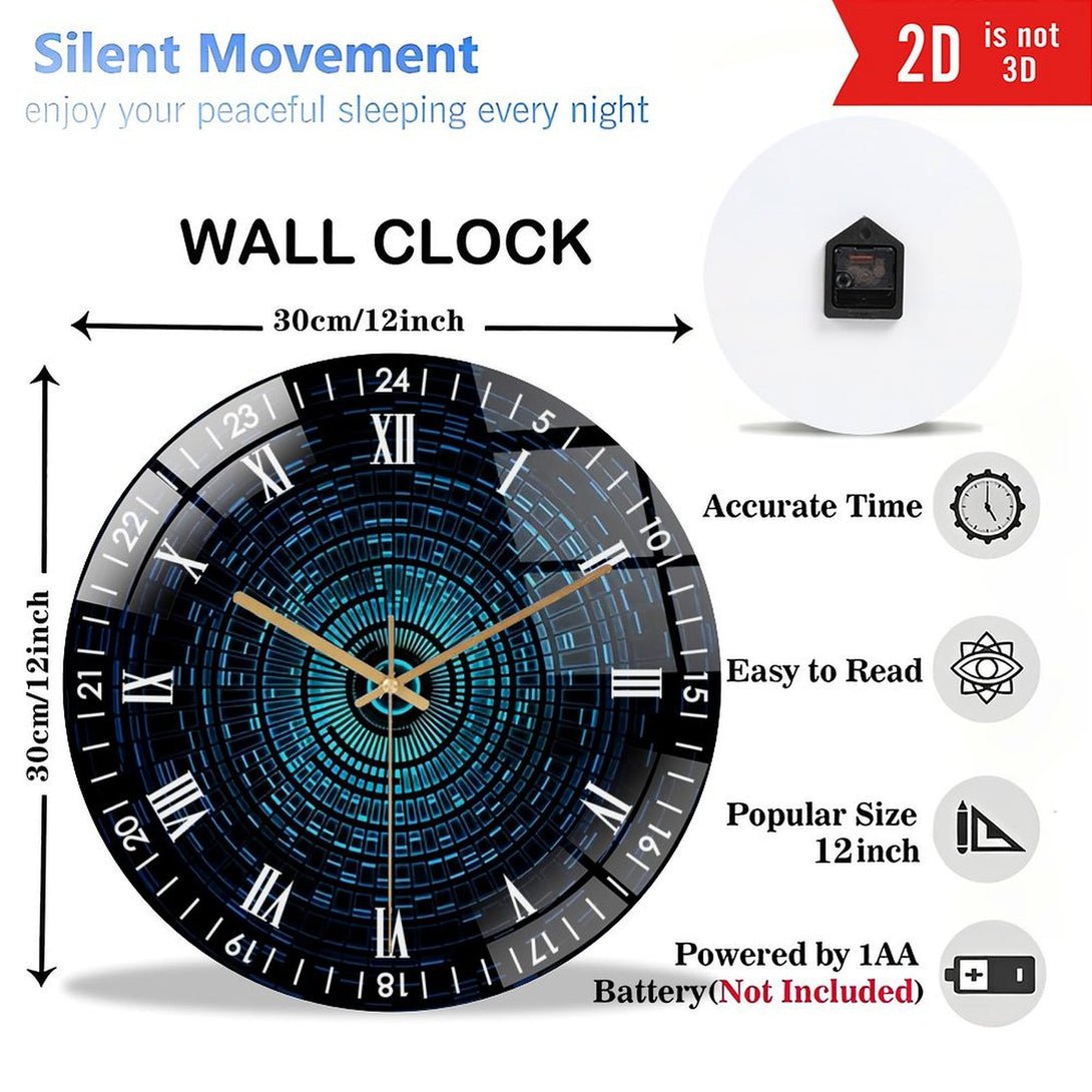 Clock Wall Decor: Futuristic Circular Wall Art Glass Wall Clock, Sci-fi Inspired Interiors Decor Wall Clock for Homes, Bars, Offices, Man Caves, Garages, And Living Rooms. Style 12×12inch(30×30cm)