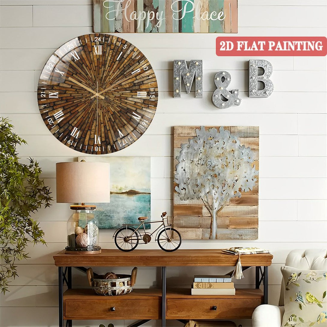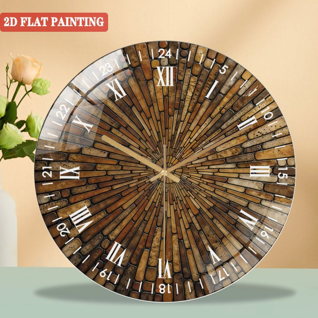 Tempered Glass Wall Art Round Glass Wall Clock, Stained Look Round Wall Art Gift Decor Wall Clock for Homes, Bars, Offices, Man Caves, Garages, And Living Rooms.