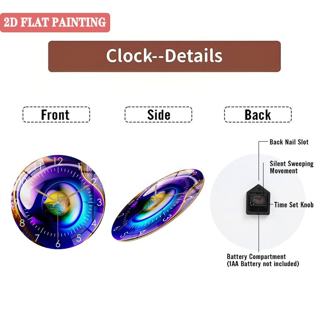 🕚[Silent Ticking Wall Clock] This glass wall clock features a silent ticking mechanism that accurately tells the time, allowing you to enjoy a peaceful rest. The precise quartz movement ensures accurate timekeeping. 🕚[High-Definition Printing] Utilizing UV high-definition printing technology, this clock boasts rich colors, delicate patterns, and a resistance to fading.