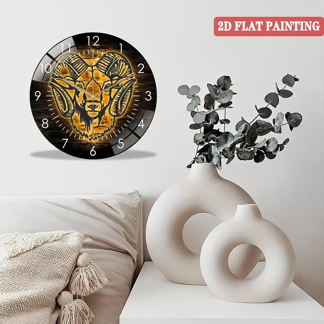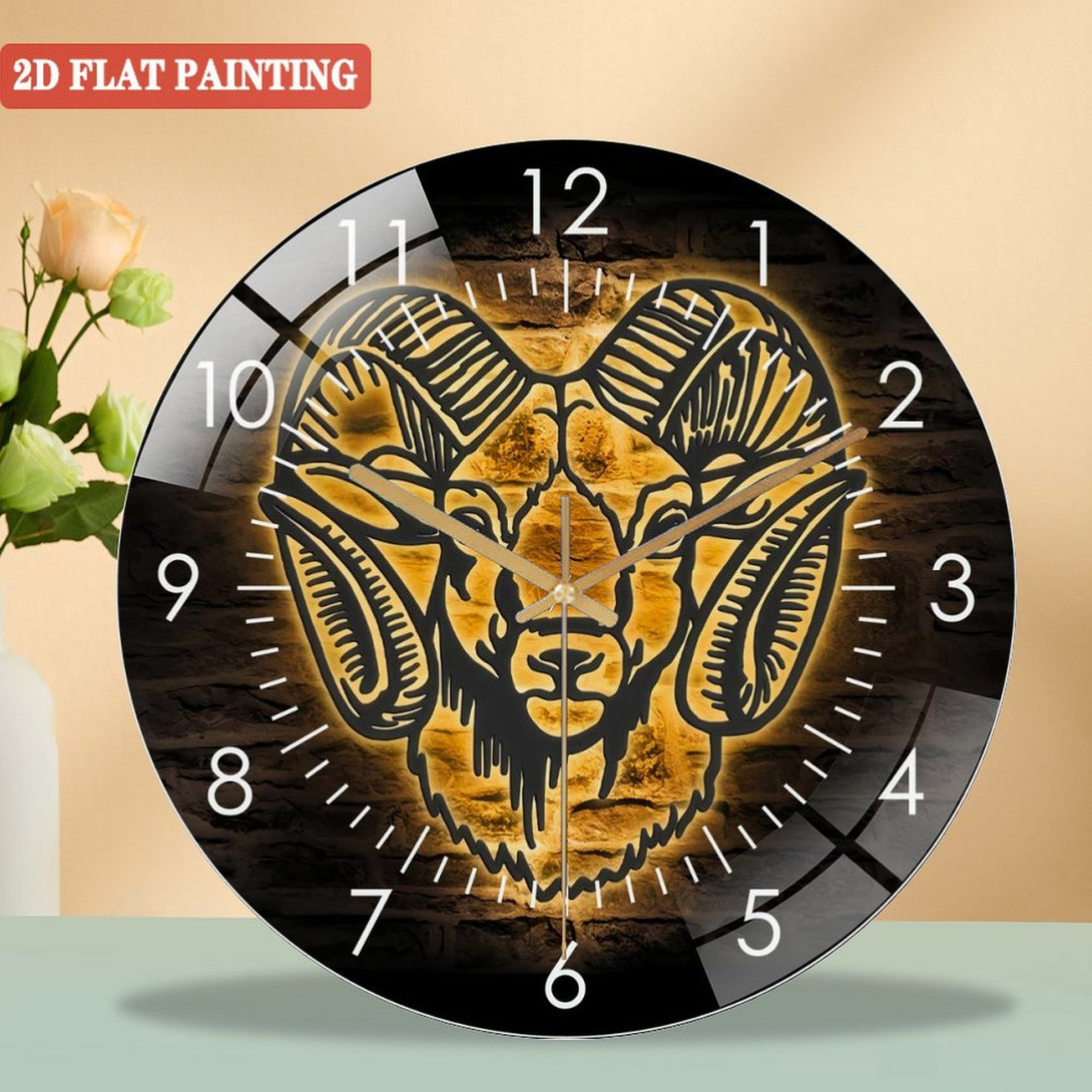 Bighorn Sheep Wild Animal Glass Wall Clocks, Bighorn Ram Farm Glass Wall Clocks,Home Decor Sheep Barn Nursery Decoration Birthday Housewarming Gift