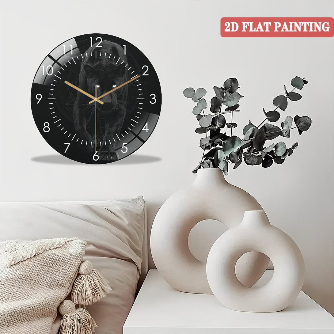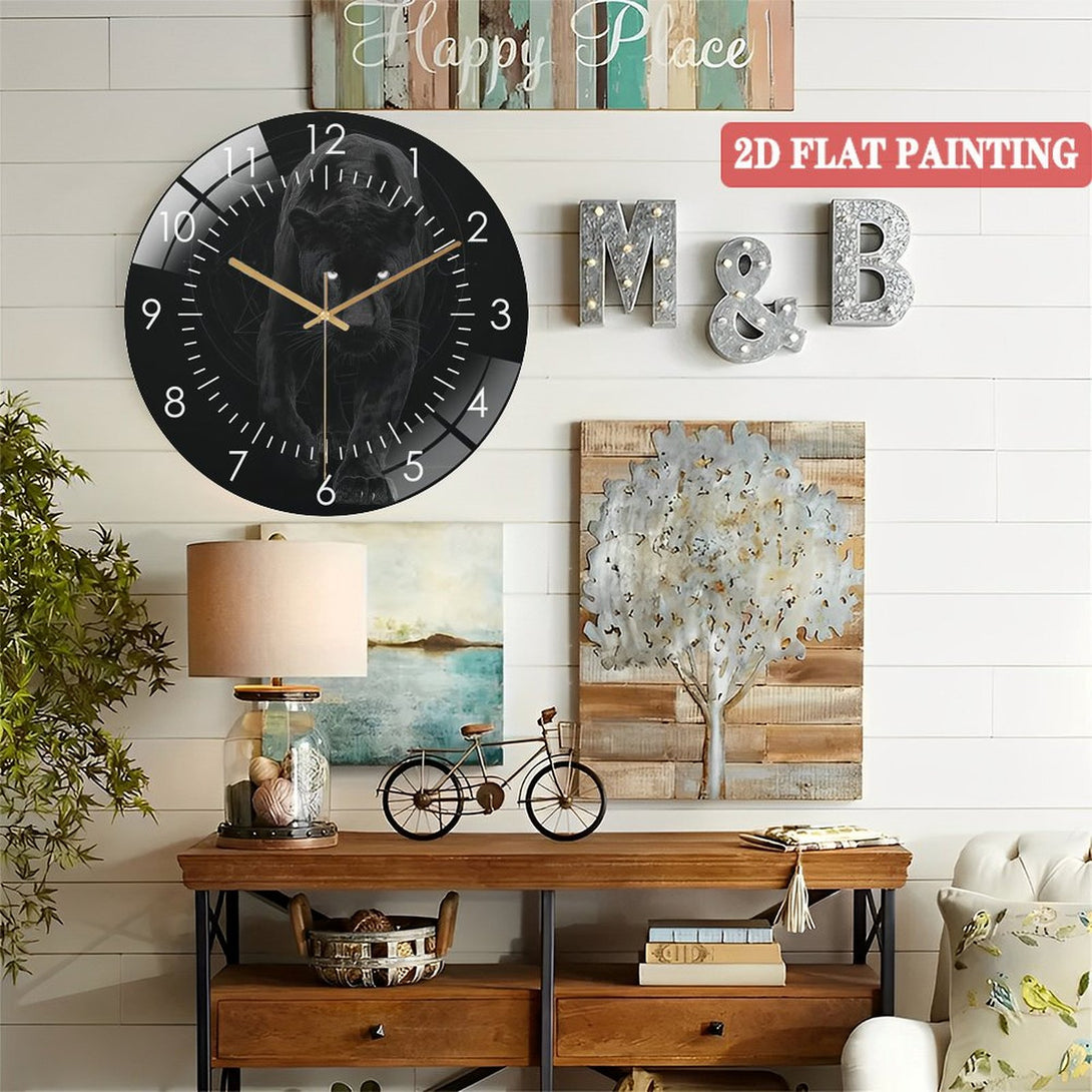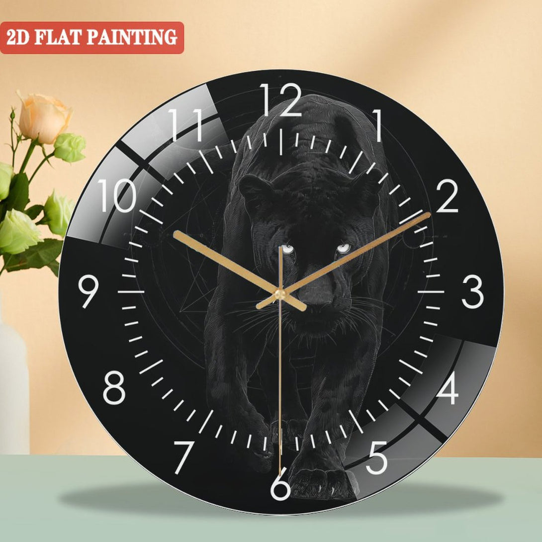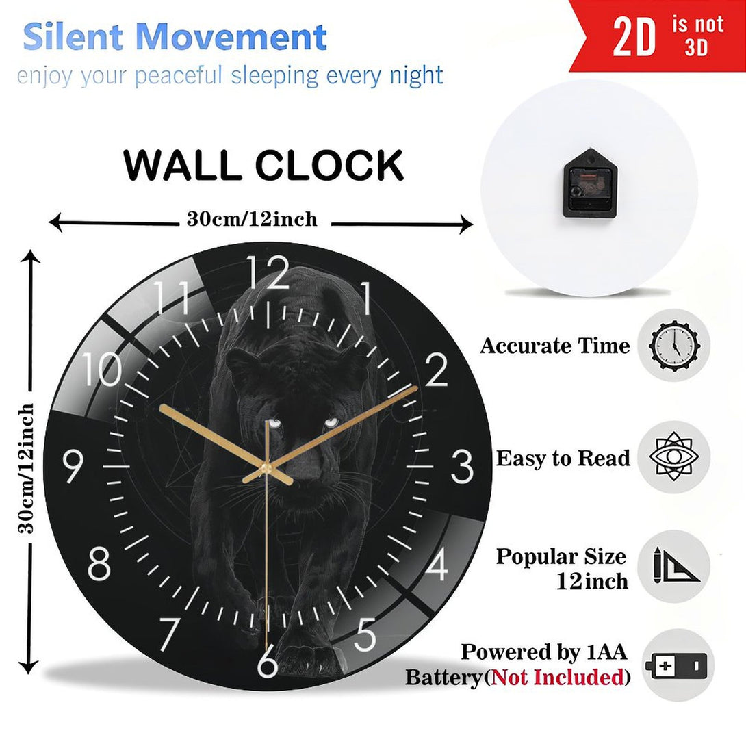 Clocks Wall Decor: Black Mystic Panther Glass Wall Clock, Dark Geometric Animal Decor Wall Clock, for Homes, Bars, Offices, Man Caves, Garages, And Living Rooms. Hallo-ween Gift .