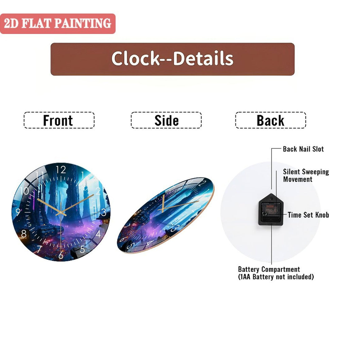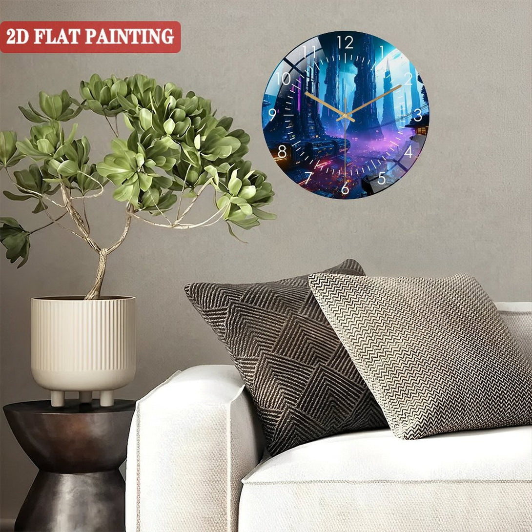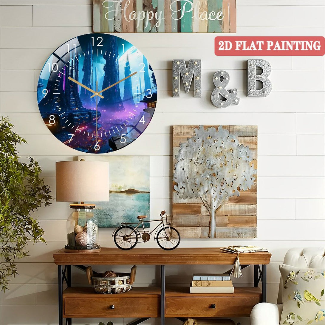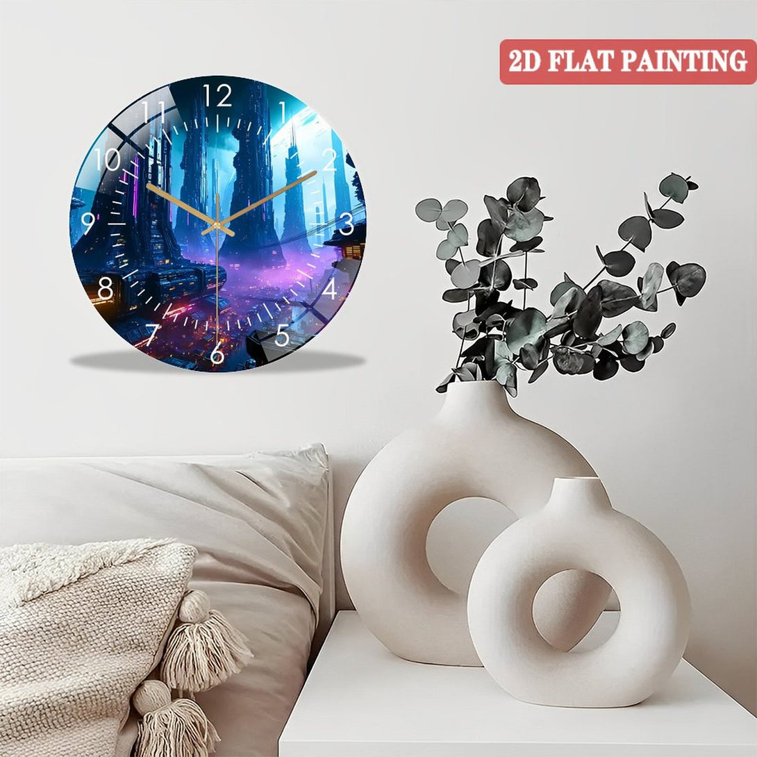 Clocks Wall Decor: Cyberpunk Cityscape Glass Wall Clock, Futuristic Sci-Fi Decor Wall Clock, for Homes, Bars, Offices, Man Caves, Garages, And Living Rooms. Hallo-ween Gift .Also Makes A Grea