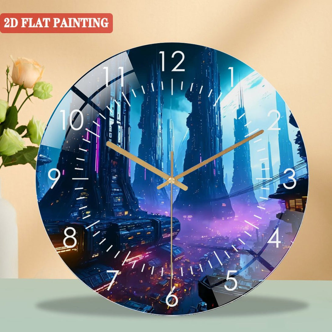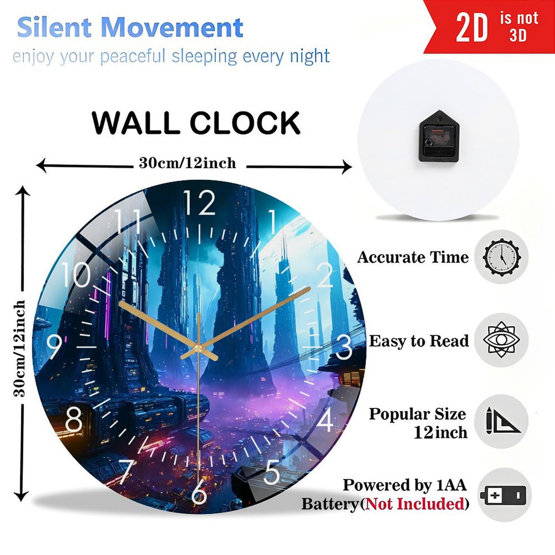 Cyberpunk Cityscape Glass Wall Clock, Futuristic Sci-Fi Decor Wall Clock, for Homes, Bars, Offices, Man Caves, Garages, And Living Rooms. Hallo-ween Gift .Also Makes A Grea