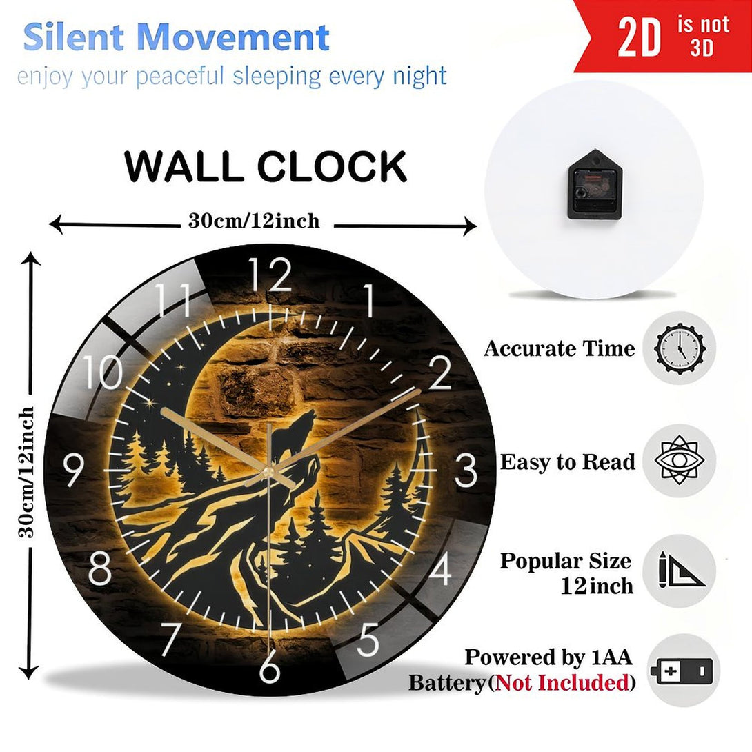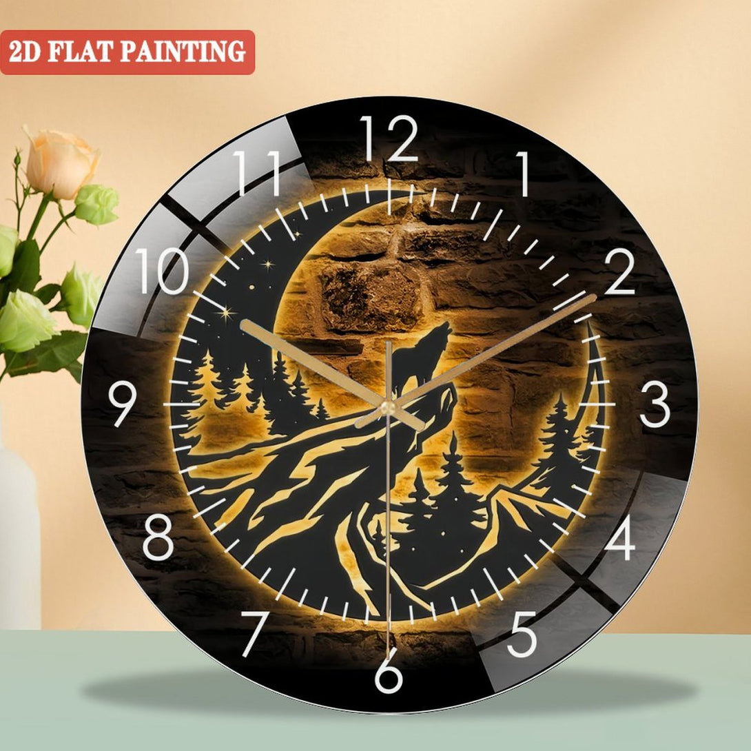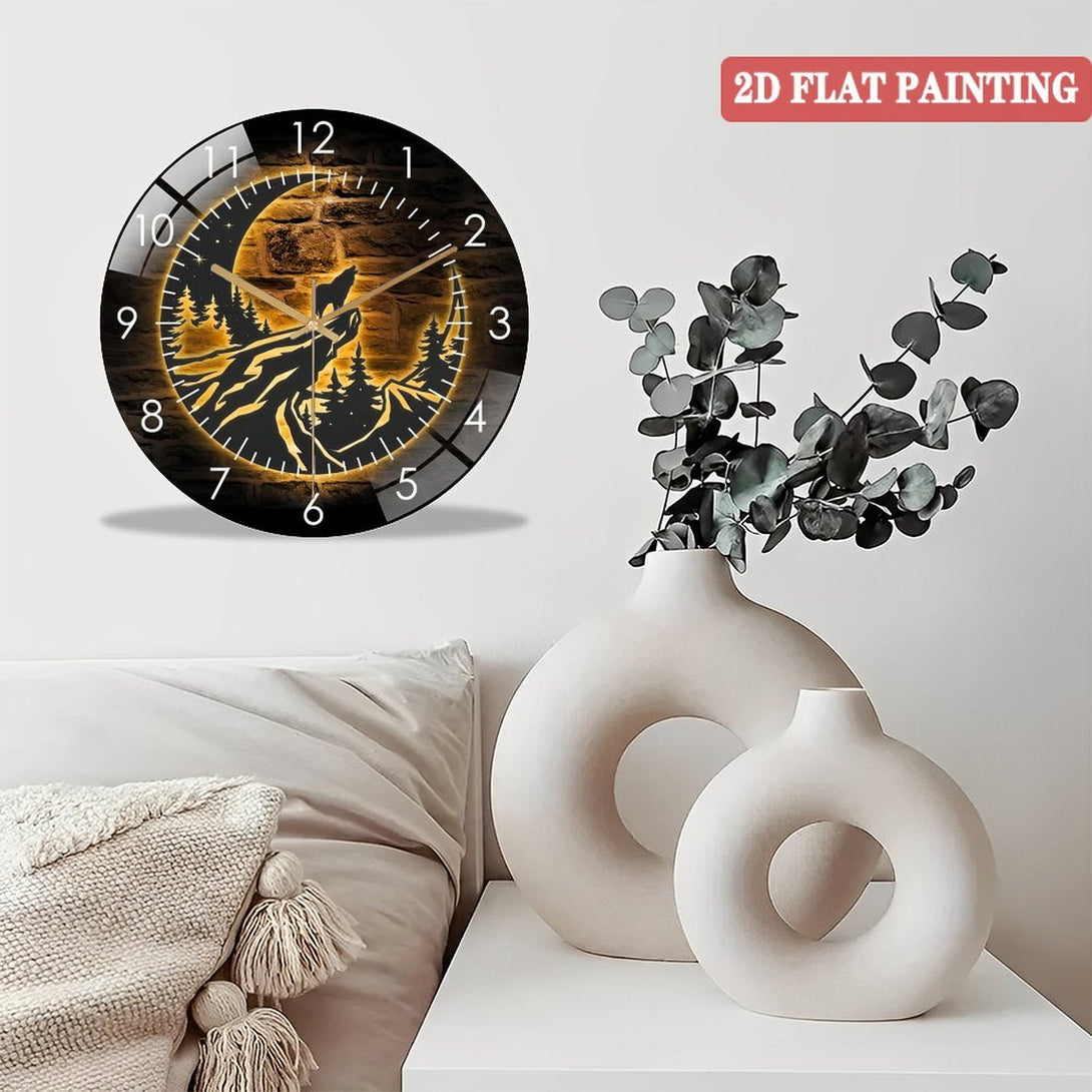 Floral Wolf On The Srescent Moon Sunflower Glass Wall Clocks,Howling Wolf Glass Wall Clocks,Home Decor Kid Boy Girl Nursery Decoration Christmas
